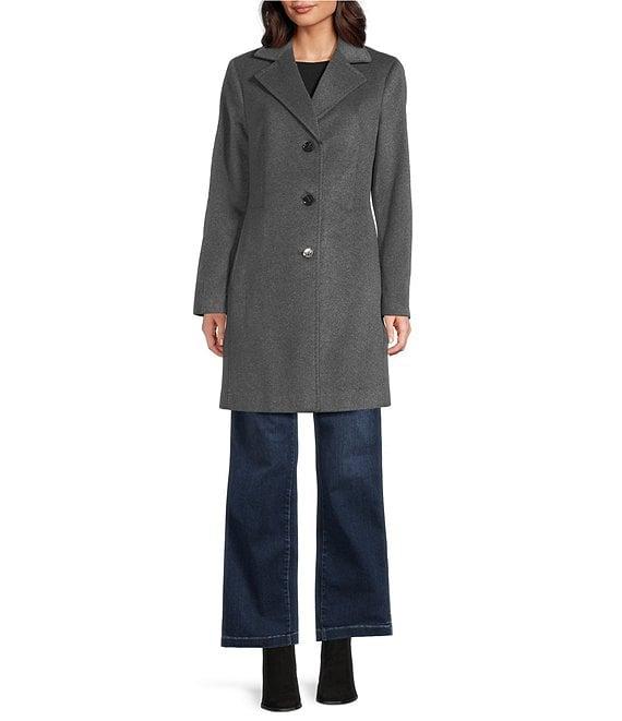 From Donna Karan, this coat features: Wool blend fabrication Single breasted silhouette Notch collar neckline Long sleeves Front pockets Straight fit Fully lined Straight hemline Button front closure Approx. 34" length Wool/polyester/cashmere; lining: polyester Dry clean Imported.
