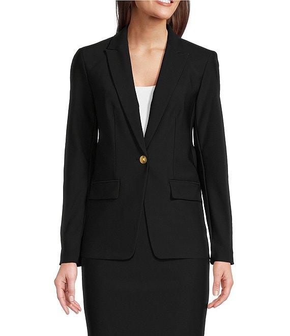 Donna Karan Woven Notch Lapel Long Sleeve Button Front Coordinating Blazer