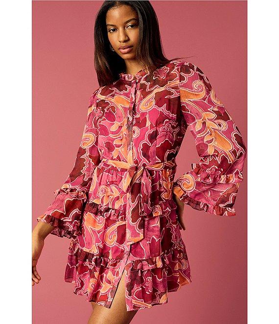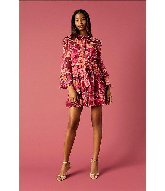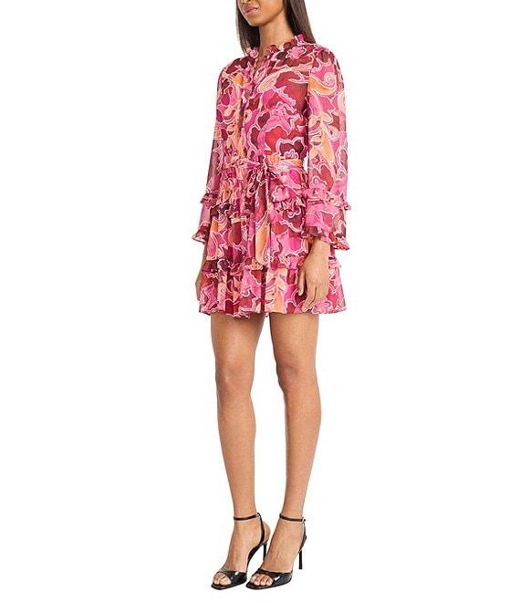 Donna Morgan Long Sleeve Tiered Ruffled Button Front Mini Shirt Dress