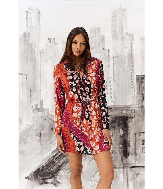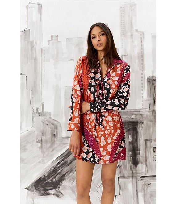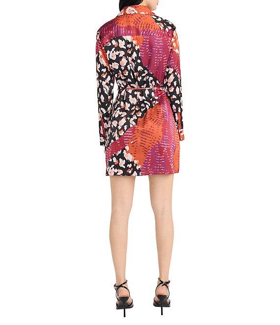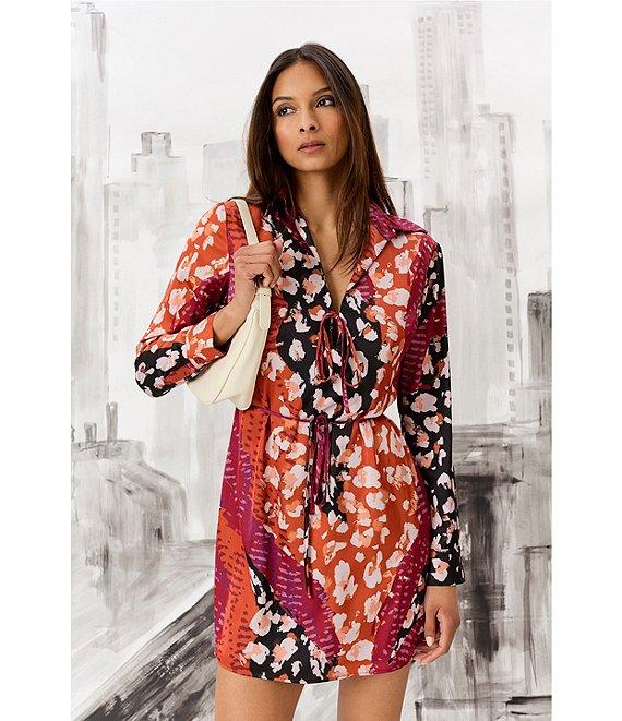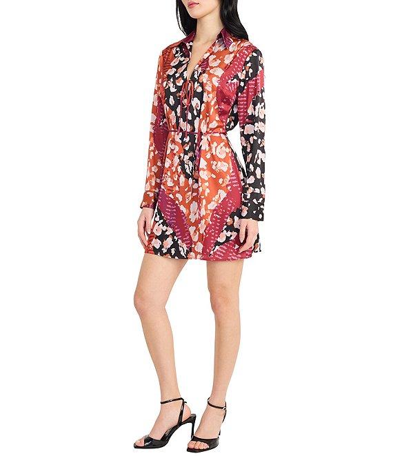 Donna Morgan Printed Satin Georgette Long Sleeve Collared Dress