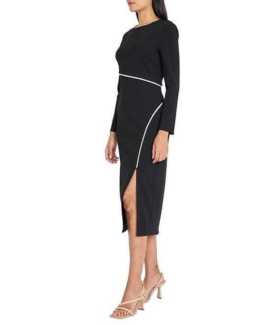 Donna Morgan Scuba Crepe Crew Neck Long Sleeve Sheath Midi Dress