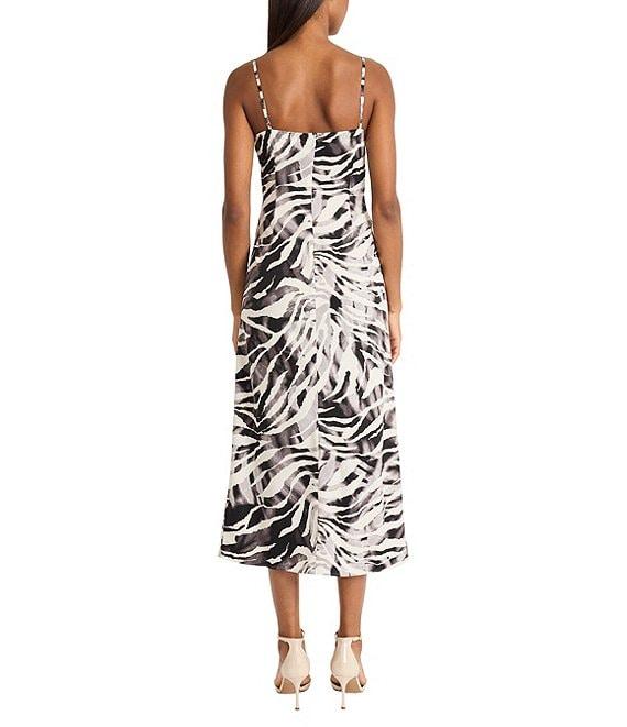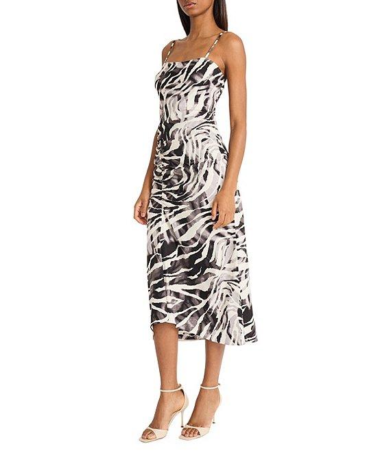 Donna Morgan Square Neck Sleeveless Ruched Animal Print Twill Tank Midi Dress