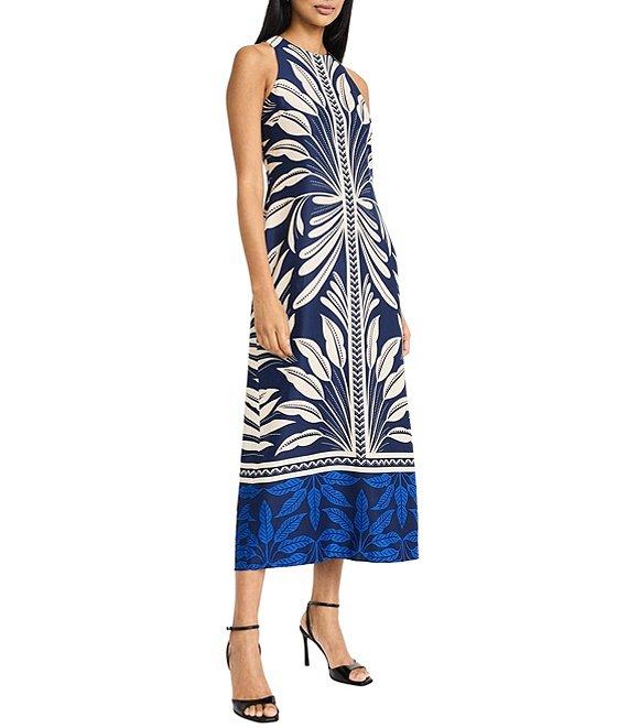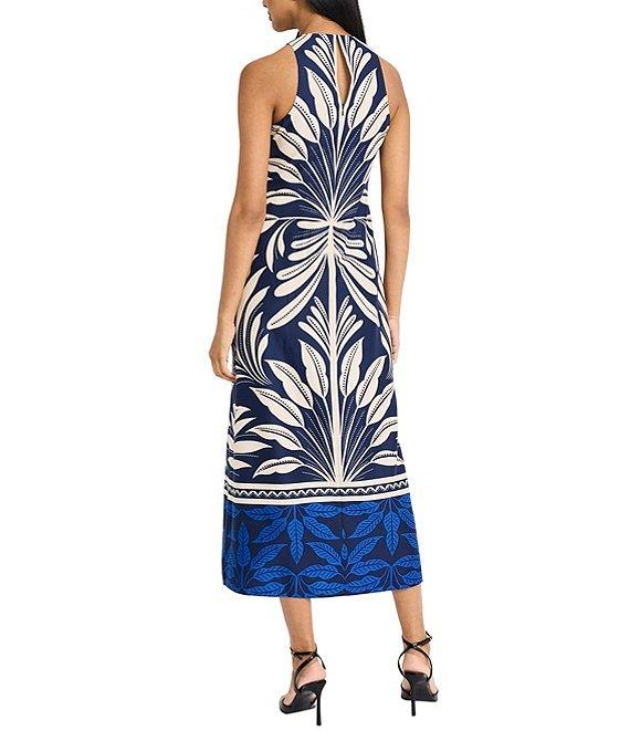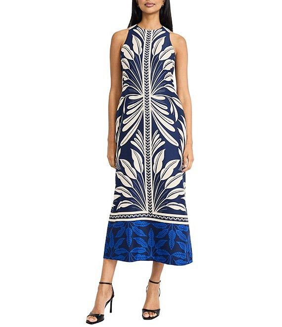Donna Morgan Twill Printed Halter Neck Sleeveless Back Keyhole Caftan Midi Dress