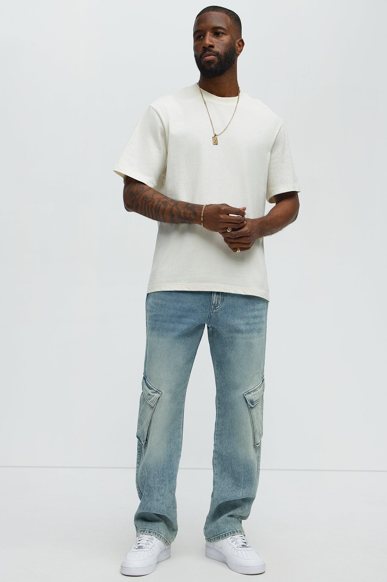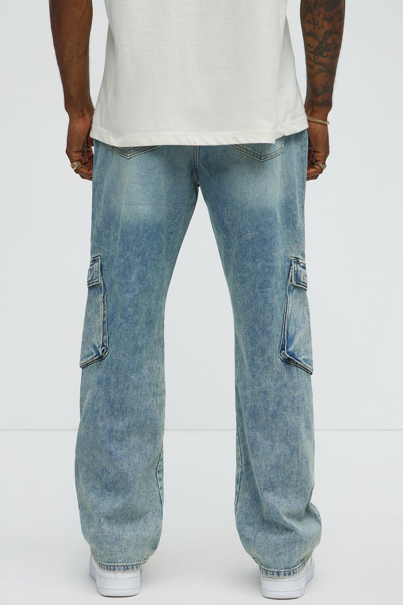 Available In Light Blue Wash. Slim Fit Zip Fly Button Closure 5 Pocket Detail Cargo Pockets 100% Cotton Disclaimer: Due To The Specialized Wash Process, Each Garment Is Unique. Imported California Proposition 65WARNING: Cancer and Reproductive Harm - www.P65Warnings.ca.gov.