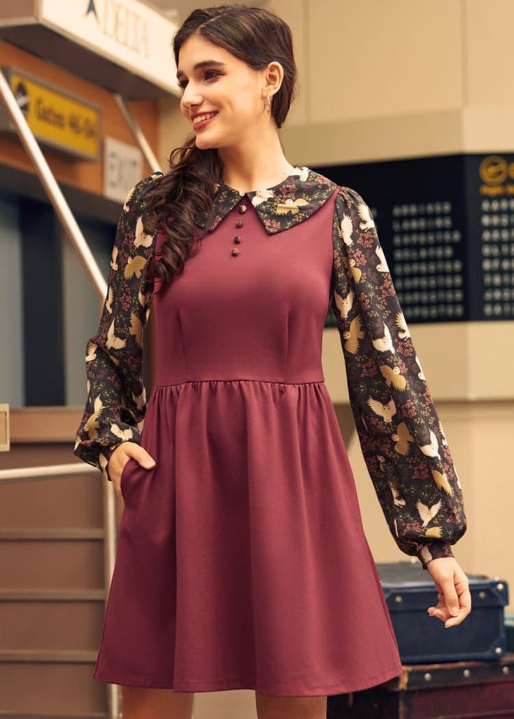For a night of smooth melodies and retro vibes, slip into the Doo-Wop Daydreamer Contrast Dress in Velvet Vine. This ModCloth namesake label piece features burgundy knit fabric that provides comfort with medium stretch, while contrasting sleeves add a playful touch. A zipper closure ensures a snug fit, making this dress perfect for dancing or dining. Pair with T-strap heels and a pearl necklace for a vintage-inspired look that’s classic and stylish.Machine wash cold, line dryShell: 67%Viscose,29%Polyamide,4%Elastane Contrast: 100% PolyesterLength 36.5"ImportedModel is wearing a US size SModel Measurements: Height 68/Bust 34"/Waist 24"/Hips 36"