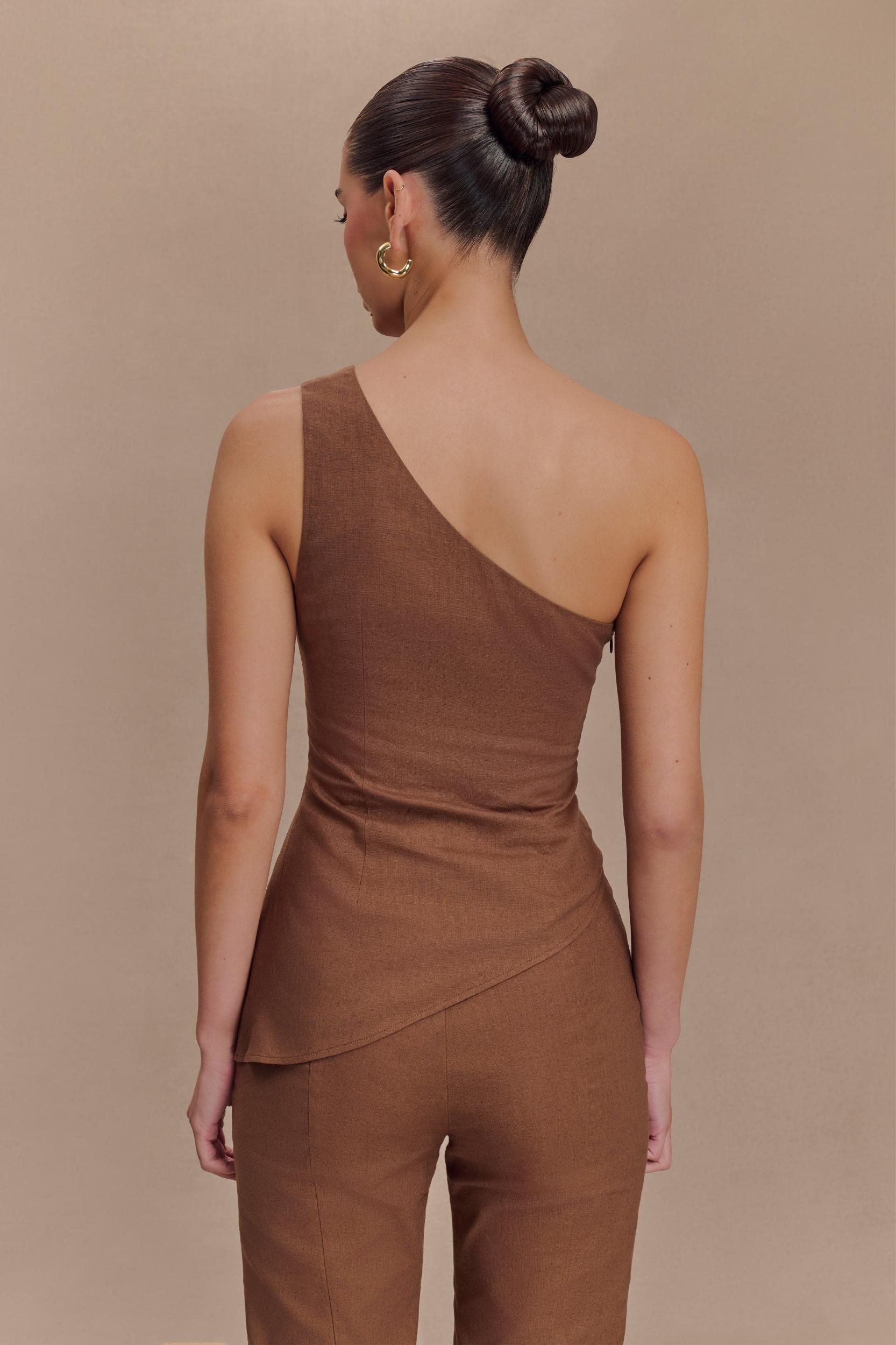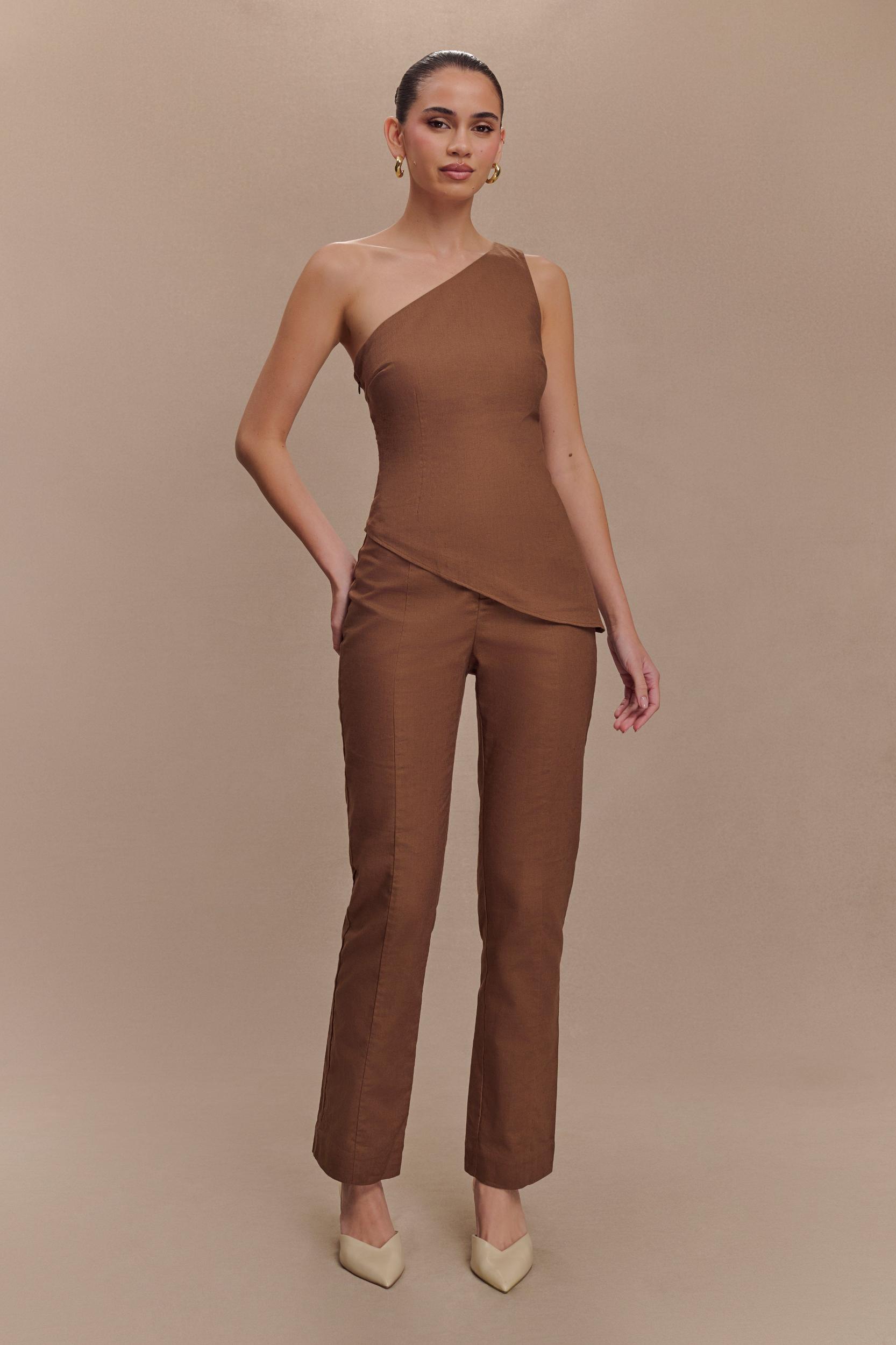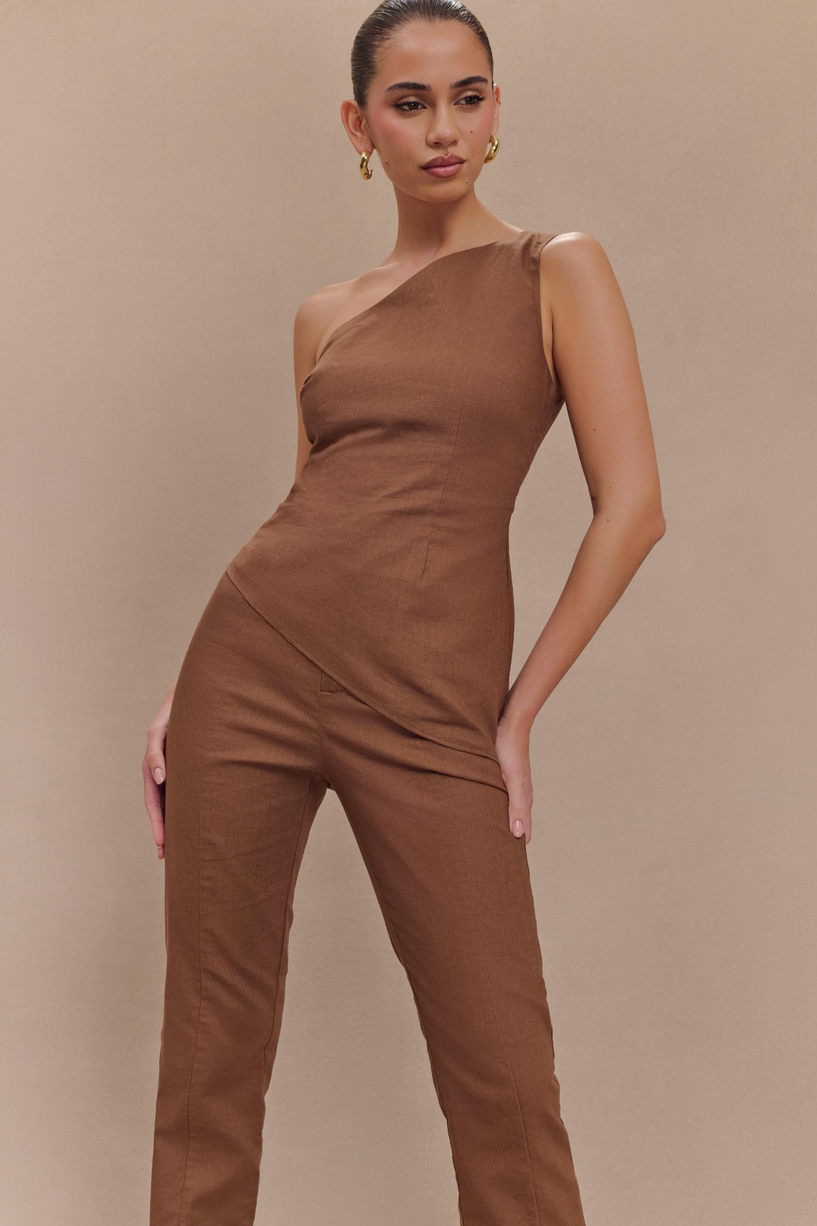 One shoulder, endless possibilities. Turn heads with the Dora Linen One Shoulder Top, a sleek and modern piece that embodies effortless sophistication. Featuring a one-shoulder design and a striking asymmetrical hem, this longline top offers a unique silhouette that flatters the figure. The side zip ensures an easy fit, making it as comfortable as it is stylish. Crafted from breathable linen, it’s the perfect choice for warm-weather occasions or elevated daytime looks. Pair it with the Dora Linen Pants for a coordinated, chic ensemble that’s sure to make an impression.