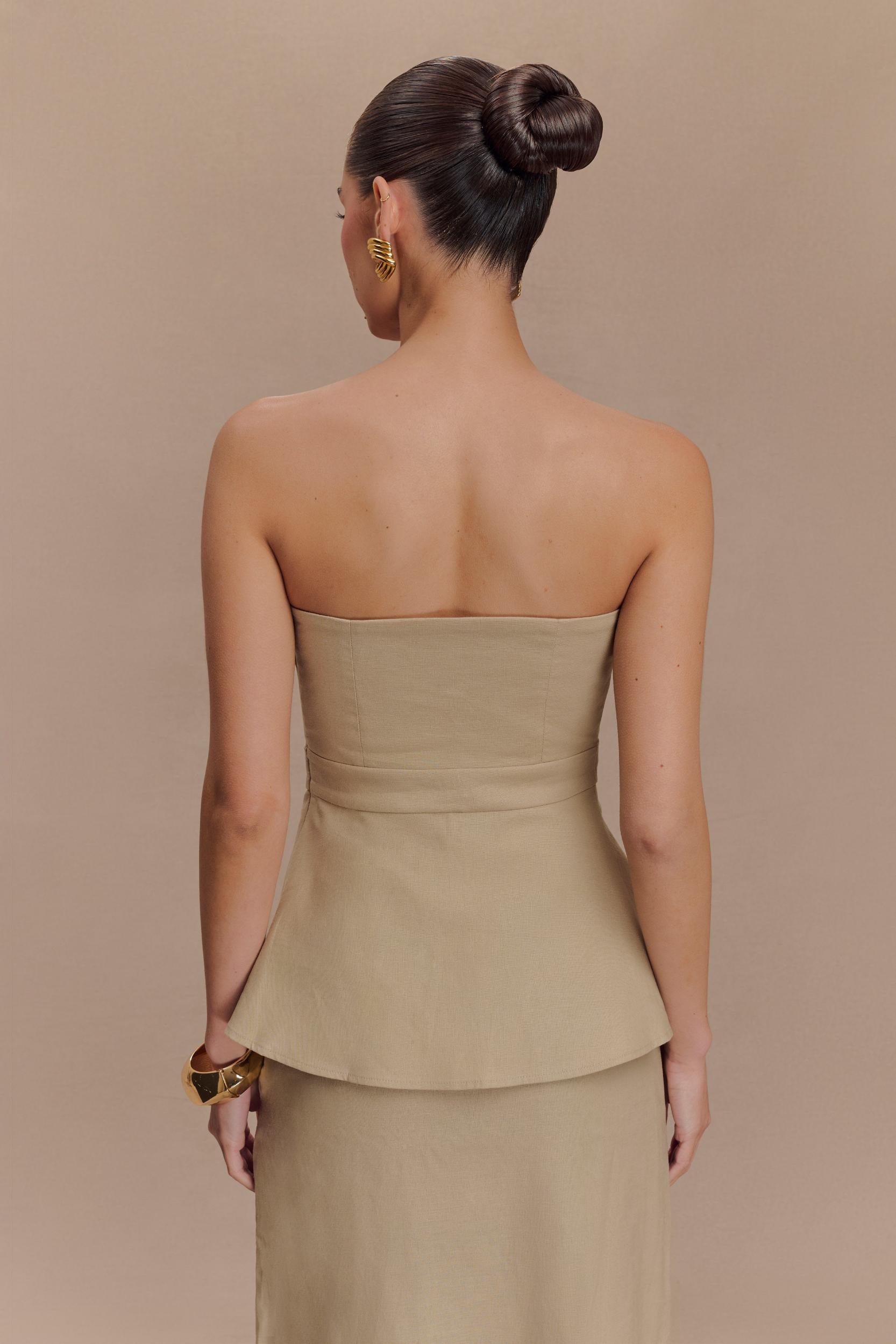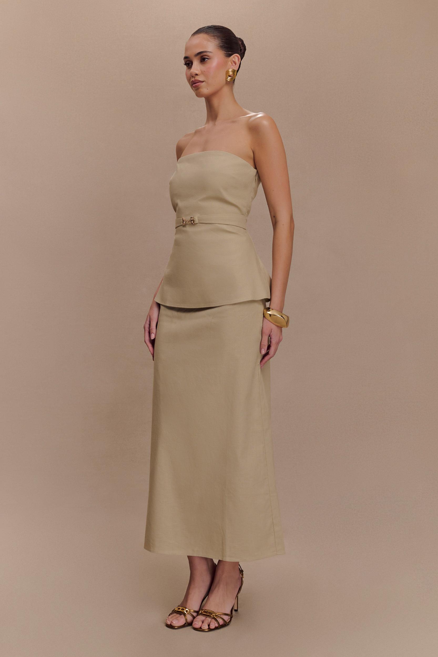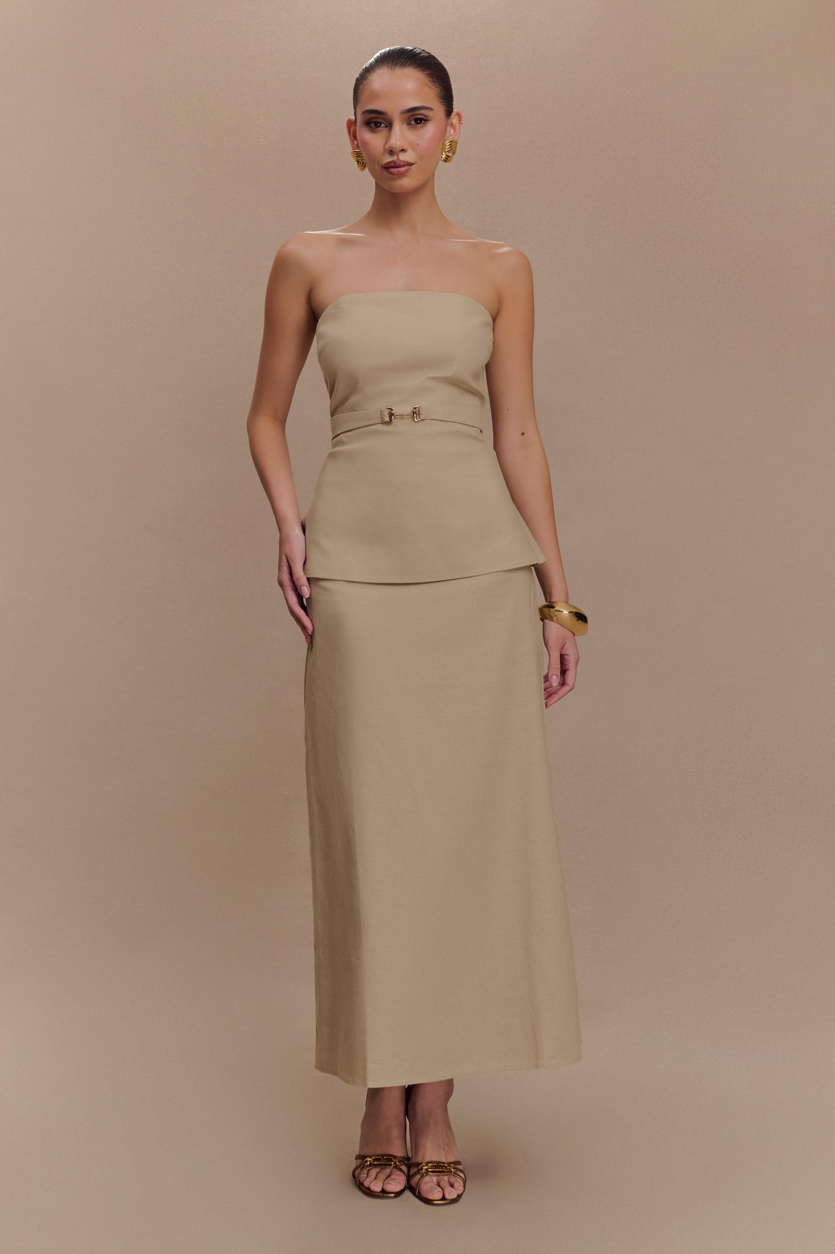 Sleek, stylish, and so sophisticated. The DORA Strapless Linen Top is the perfect fusion of chic elegance and contemporary style. Featuring a strapless design and longline silhouette, this top is both flattering and versatile. The belted waist detail cinches the figure, with a stylish centre front buckle adding a bold touch. Finished with a side zip for easy wear, this top is ideal for pairing with everything from tailored pants to skirts, offering effortless sophistication for day or night. Crafted from lightweight linen, it’s the ultimate piece to add fresh, breathable style to your wardrobe. Pair with the Dora Linen Midi Skirt for a sleek, coordinated look.