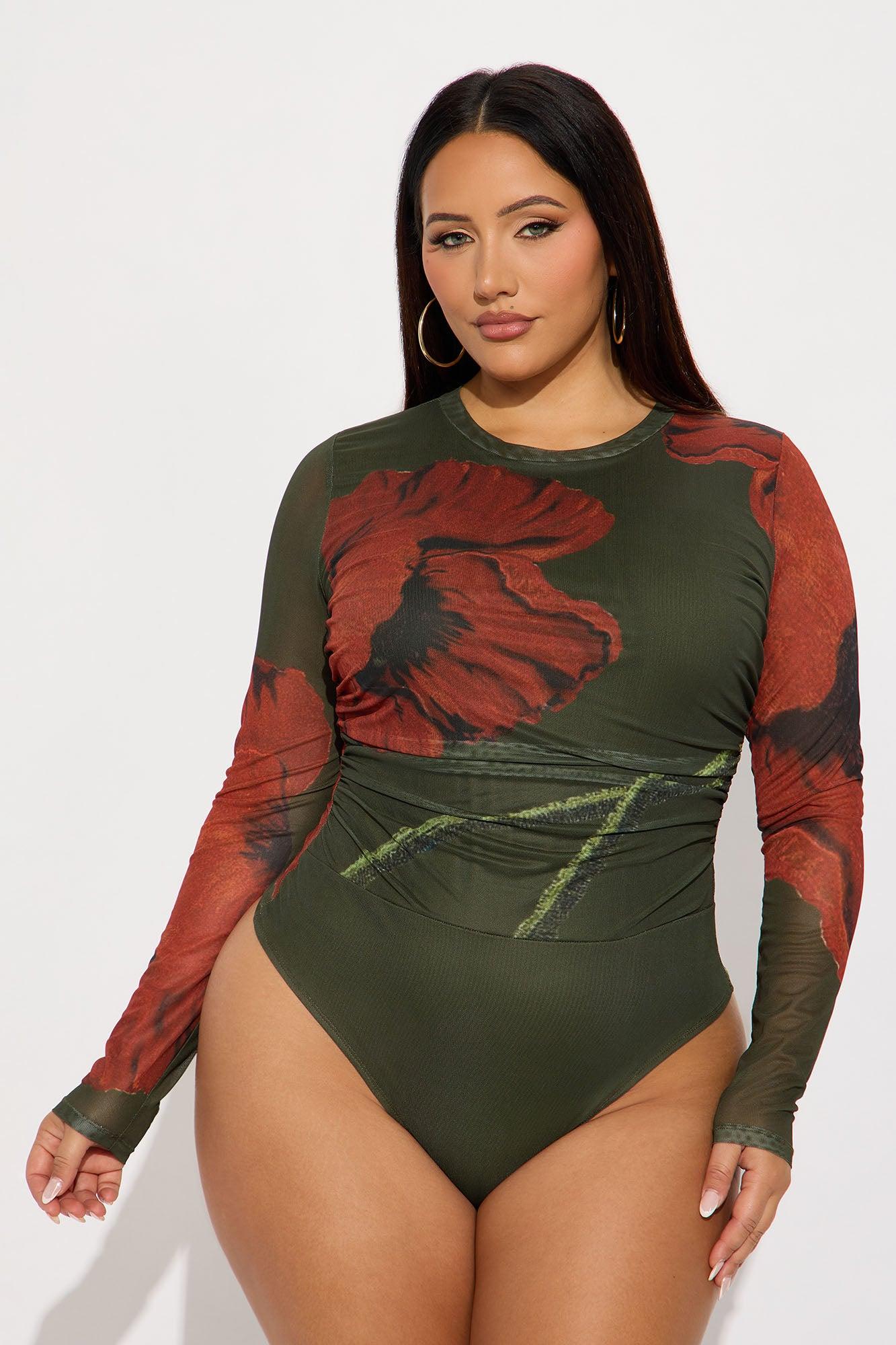 Doreen Floral Long Sleeve Mesh Bodysuit - Green/combo