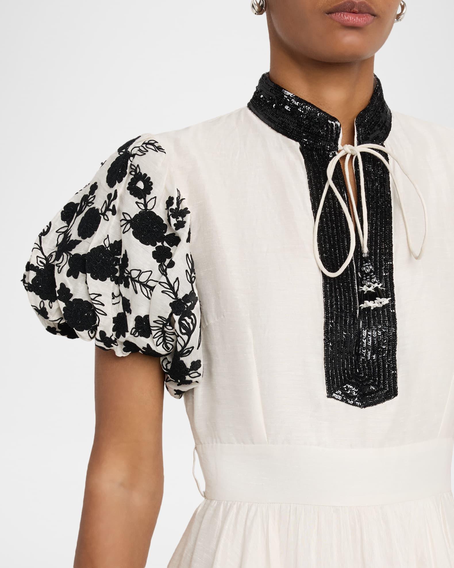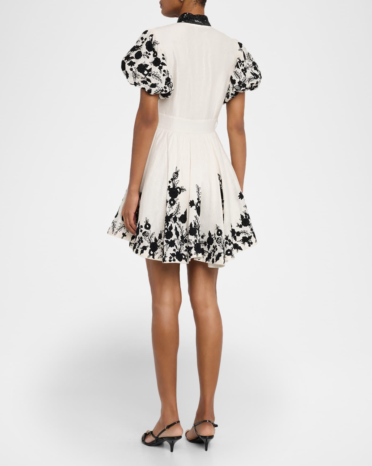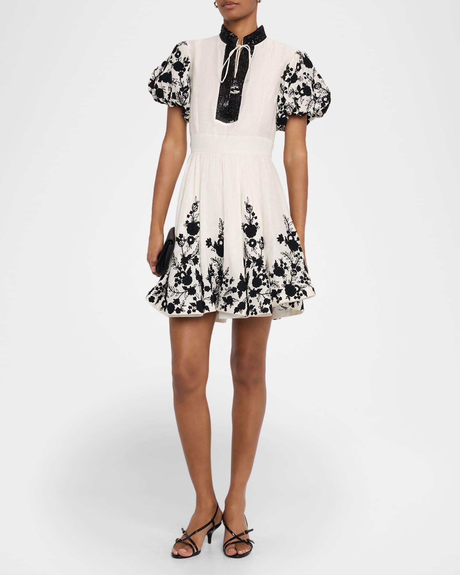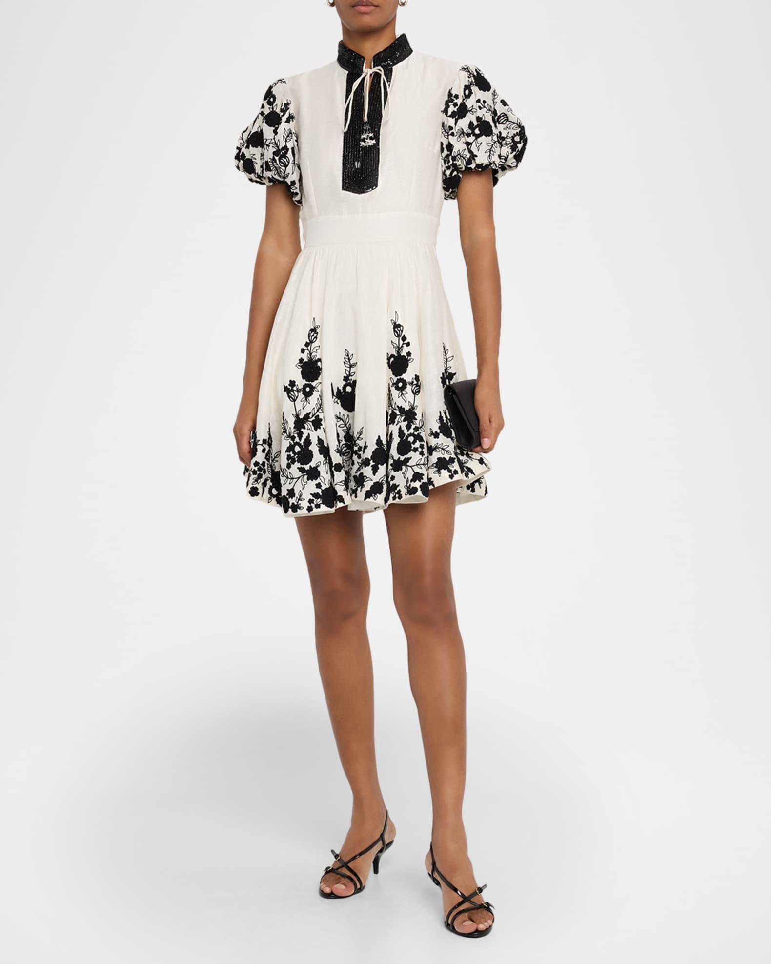 Dori Embroidered Organza Puff-Sleeve Mini Dress