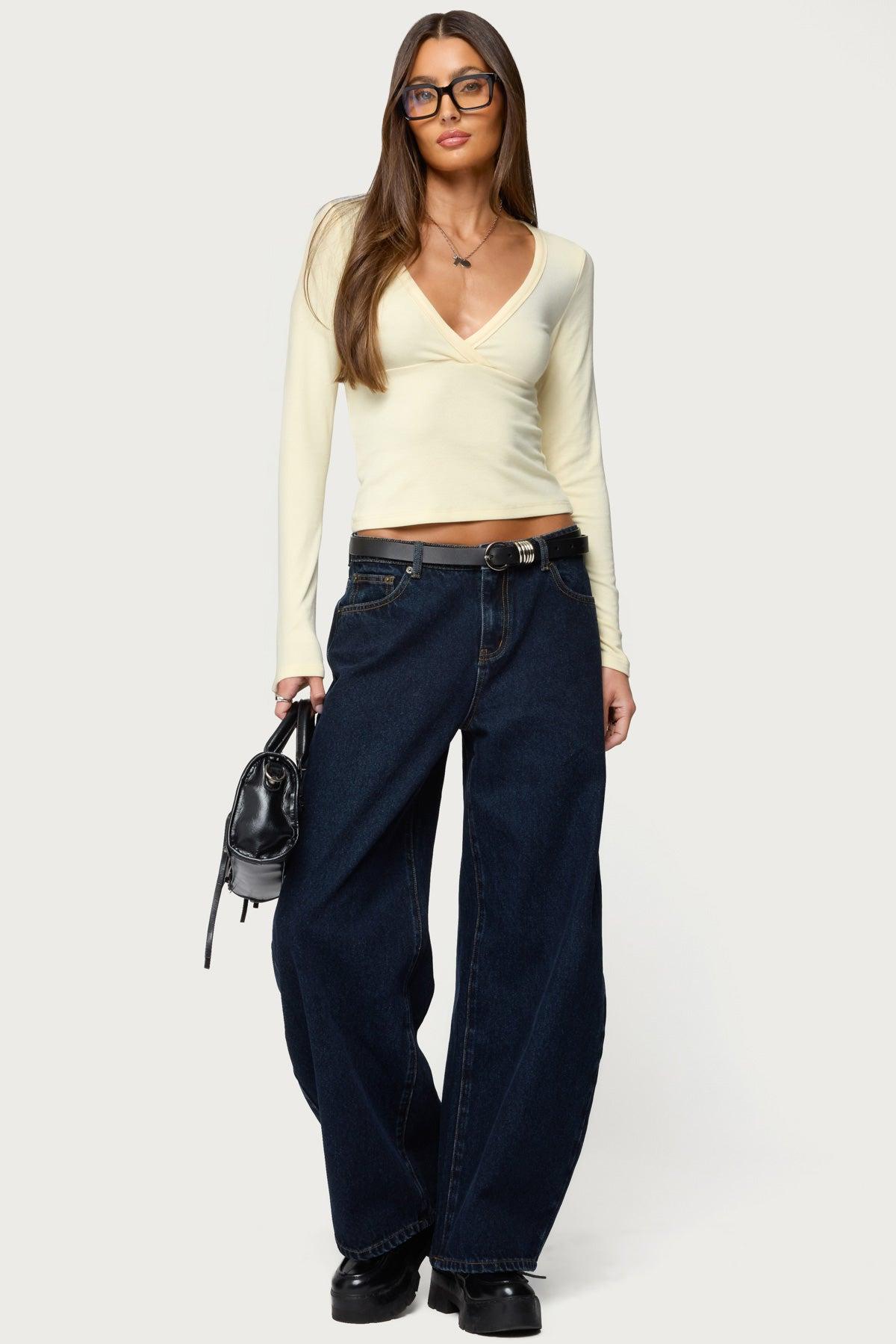 Top Long sleeves V neckline Underbust stitching Rayon, Cotton, Acrylic, Spandex Model wears size S Model height is 5'9 Item care: Machine wash at maximum 30ºC, do not bleach, do not tumble dry, iron at a maximum of 110ºC, do not dry clean
