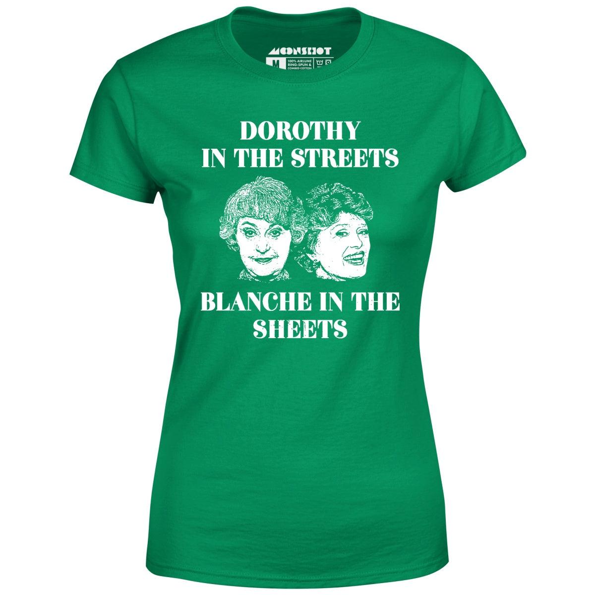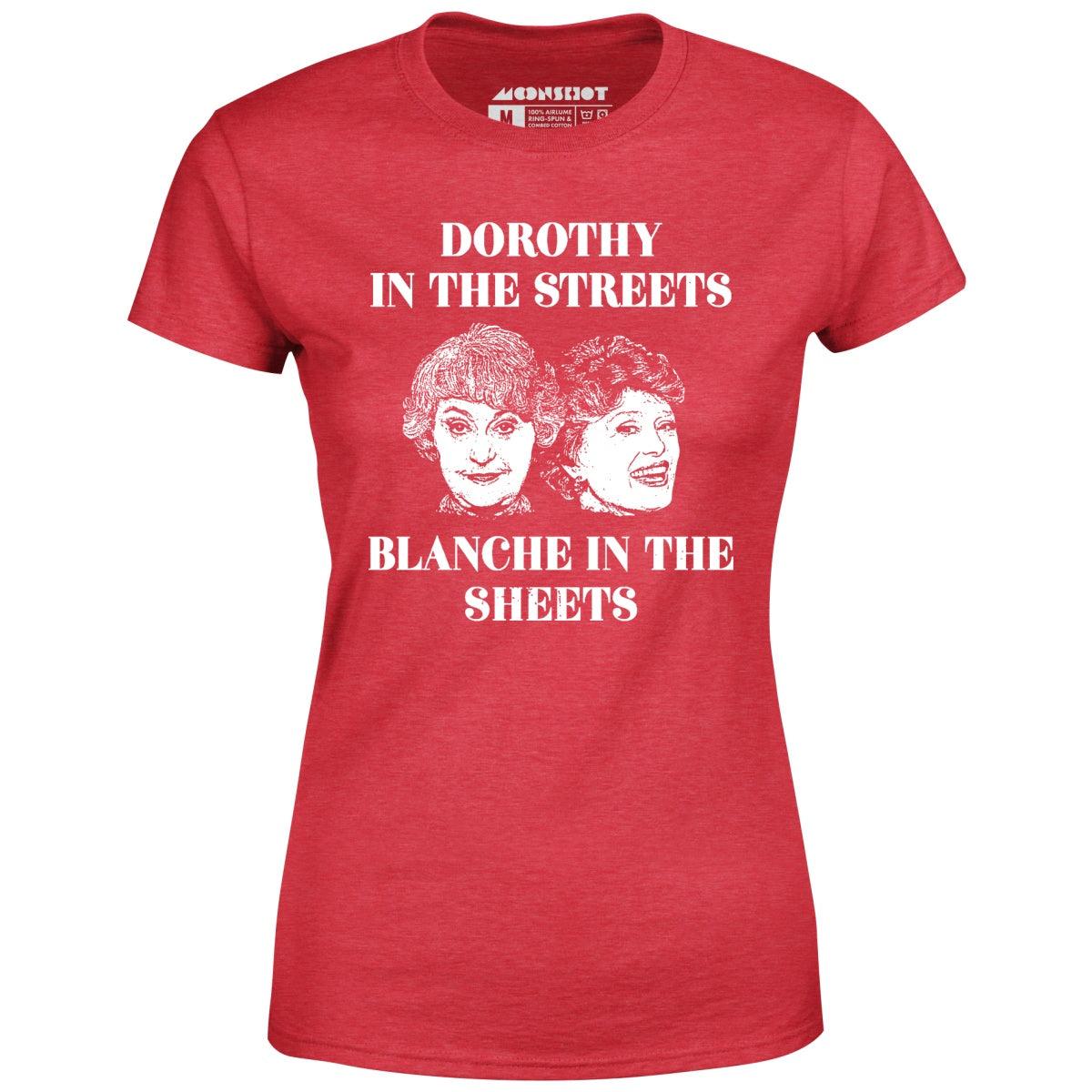 A very funny spoof parody design inspired by Dorothy and Blanche from The Golden Girls. Printed on our super soft 100% ringspun & combed cotton women's T-Shirt. Or upgrade to our Luxury 52/48 cotton/poly vintage heather edition for an even softer classic look. We print & ship all of our high quality graphic tees in the USA.
