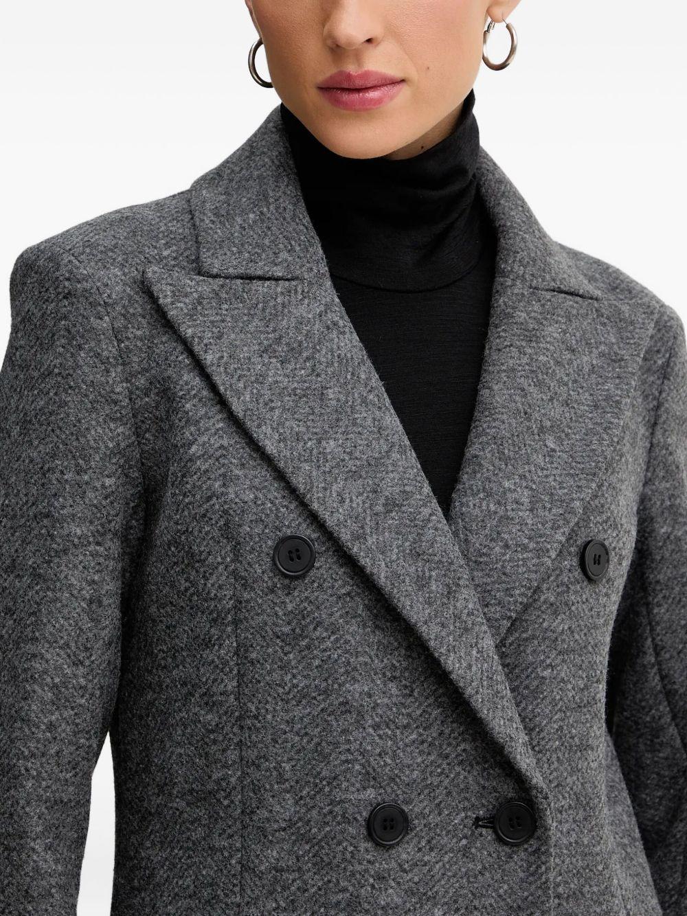 Silvian Heach double-breasted buttoned coat | Grey | black | double-breasted | button fastening | notched lapels | front flap pockets | Polyester | Double Breasted & Peacoats | Coats | Clothing | Women