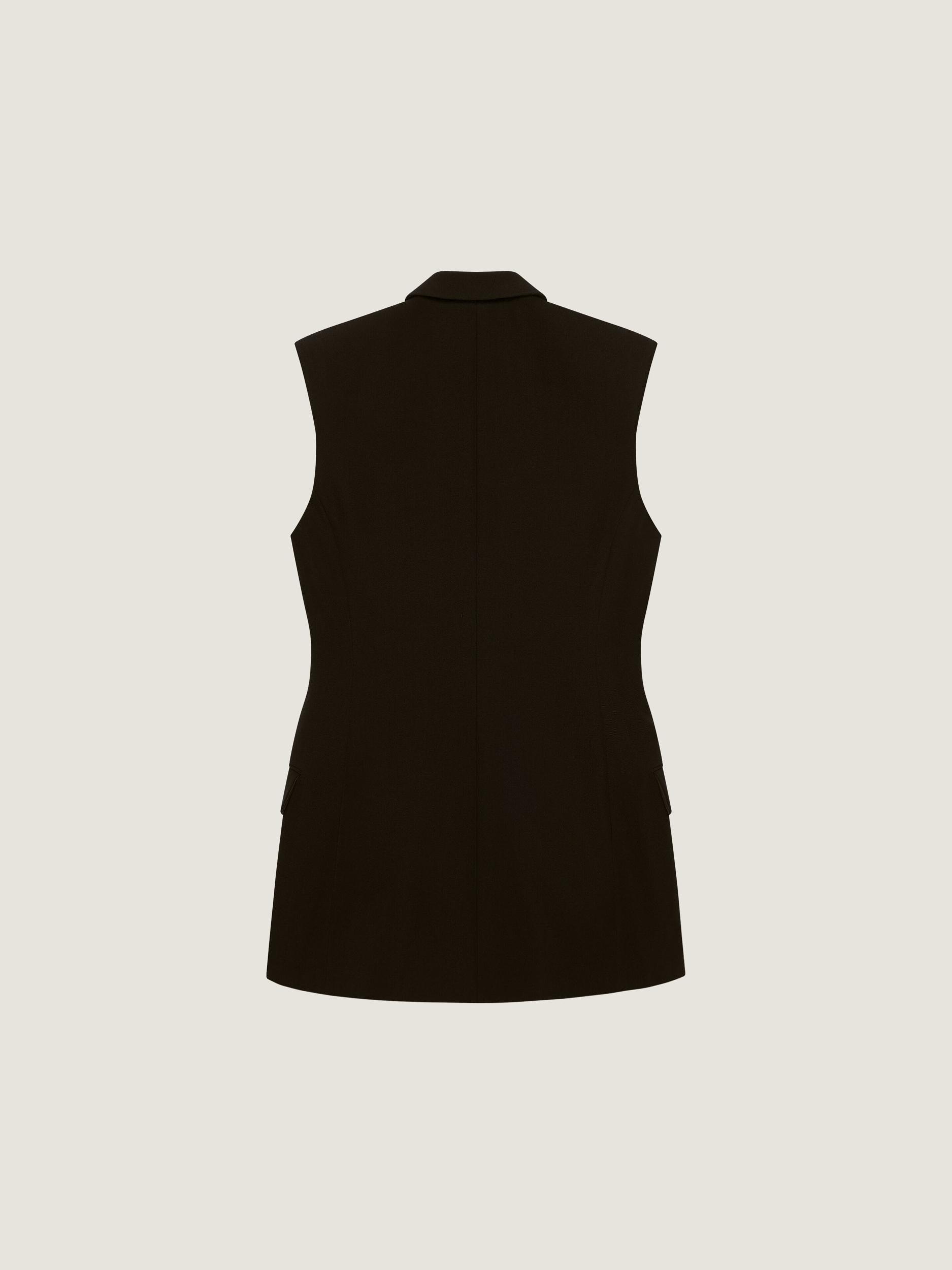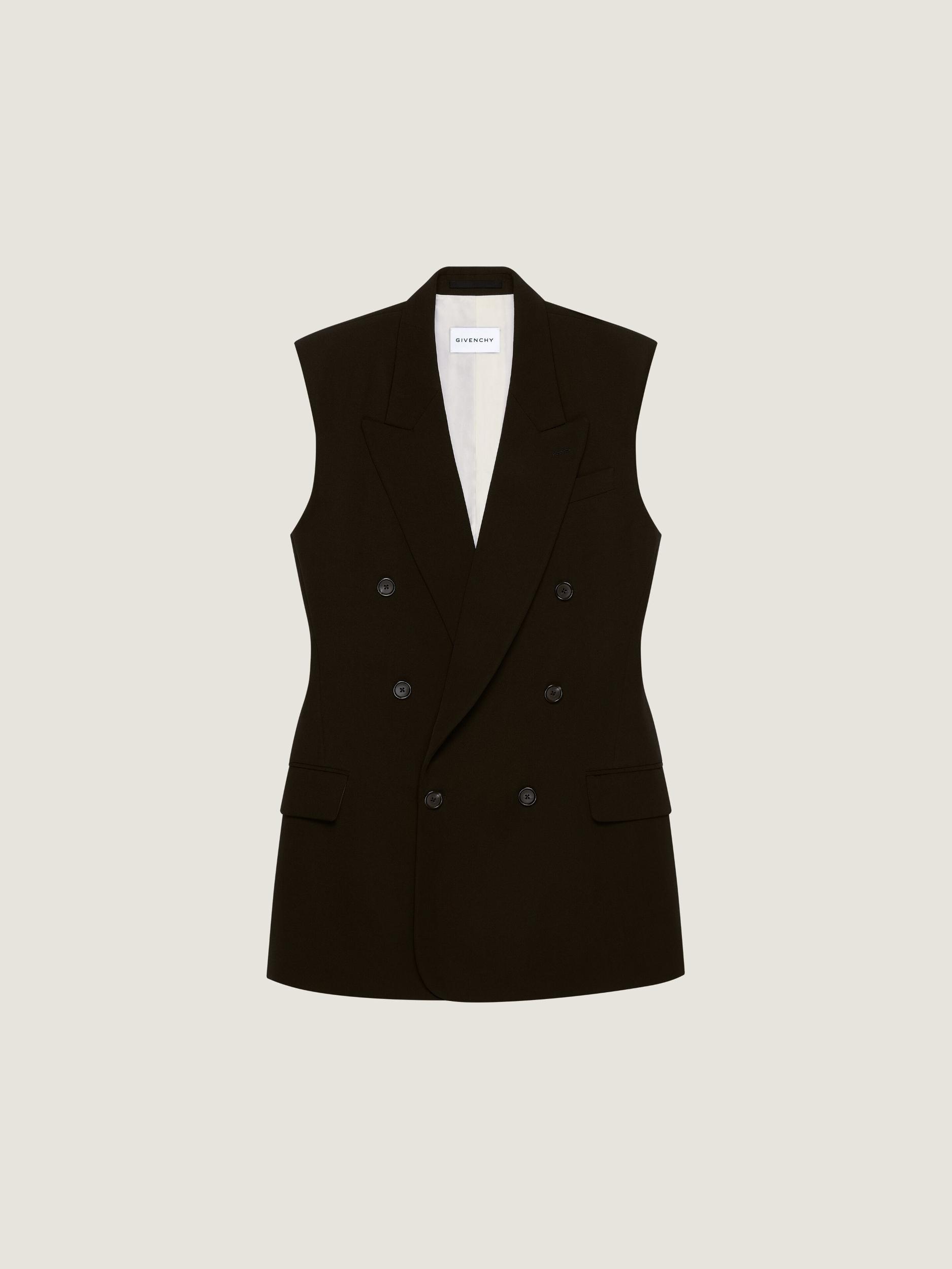 Double breasted sleeveless jacket in wool twill