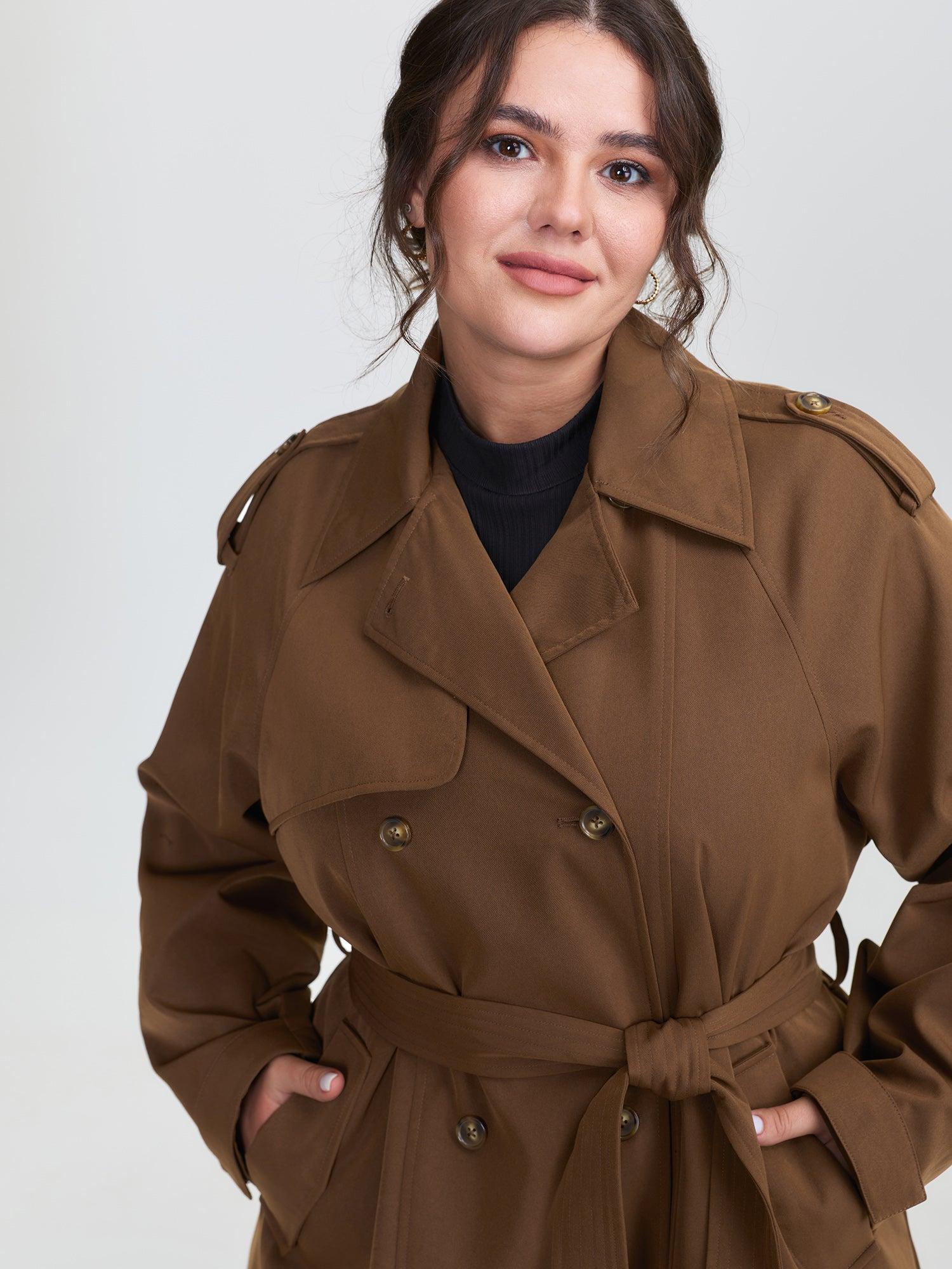 Shop Double Button Belted Trench Coat now and redefine your style with confidence at BloomChic. Tailored for mid and plus-size women. This trendy Outerwear Women, sizes 10-30. Color:Wheat;Prints:Non;Pocket:Slanted pocket;Belt:Belt;Closure Type:Button;Lining:Lining