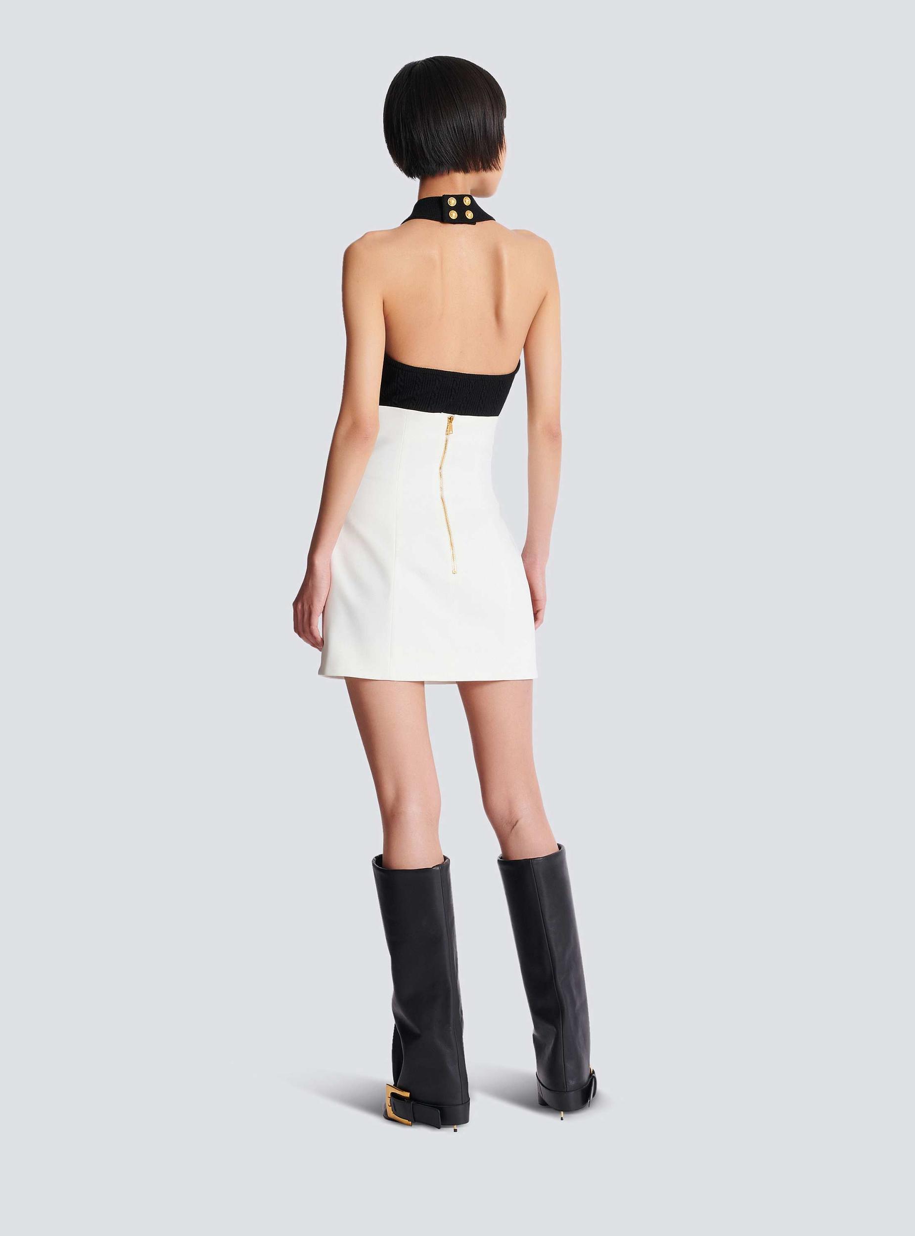 Double crepe tulip skirt with buttonsHigh waist with cut-outs2 slash side pocketsDecorative buttons on the front“Bobine” two-tone metal buttonsVisible gold metal zip fastening on the back with Balmain Paris-engraved sliderTwill liningReinforced with boningCropped slim fitModel measures 179cm and wears a size 36Main material: 97% viscose 3% elastaneMade in BulgariaItem: EF2LB027VE17100% of the viscose fibres used to make this garment come from certified, sustainably managed forests