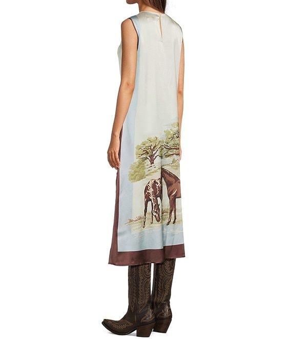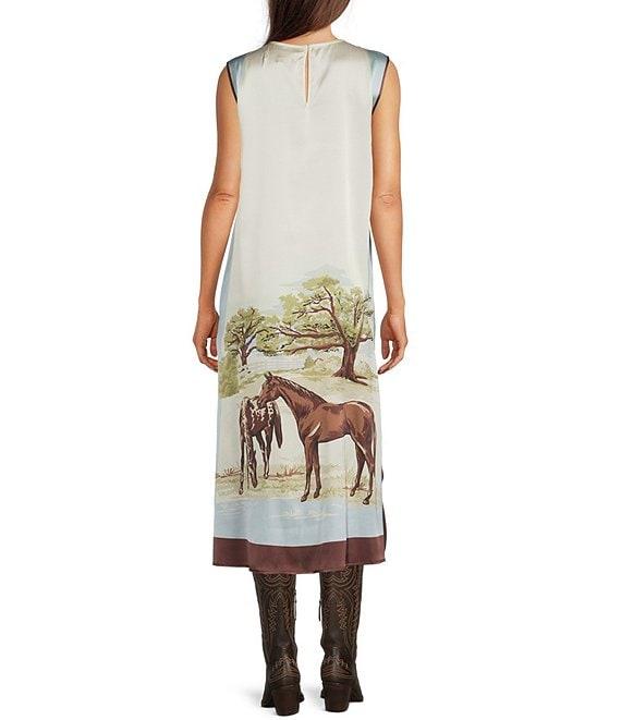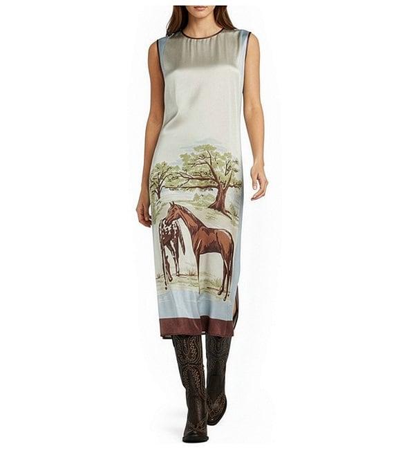 Double D Ranch Horse Sense Silk Printed Scoop Neck Sleeveless A-Line Midi Dress