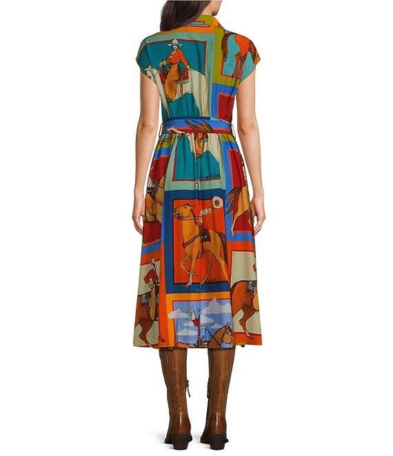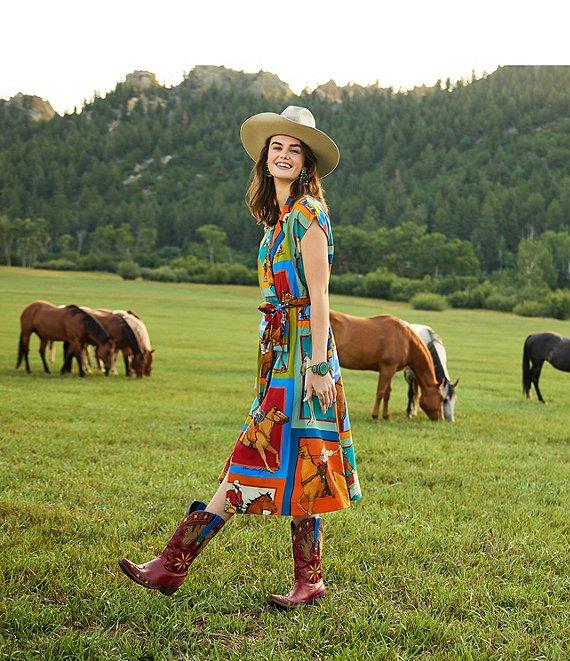 Double D Ranch Women Of The Range Western Printed V-Neck Short Sleeve Wrap Midi Dress