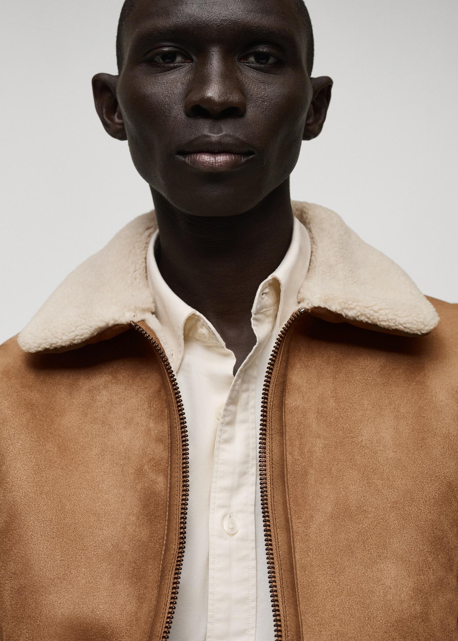 Zipper closure. Formentera Intense is an extravagant new version of the original Formentera. The composition of this. Fleece lining. Shirt collar with sheepskin collar. Interior patch pocket. Two side welt pockets. The model is 6'1" and is wearing a size M. Back length 27.76 in
