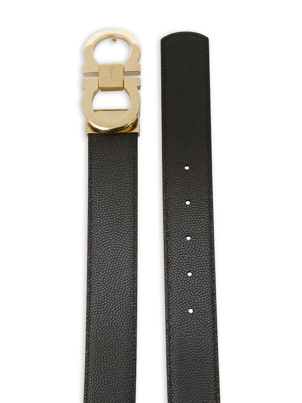 Ferragamo double Gancio belt | Black | Calf Leather | Belts | Accessories | Men