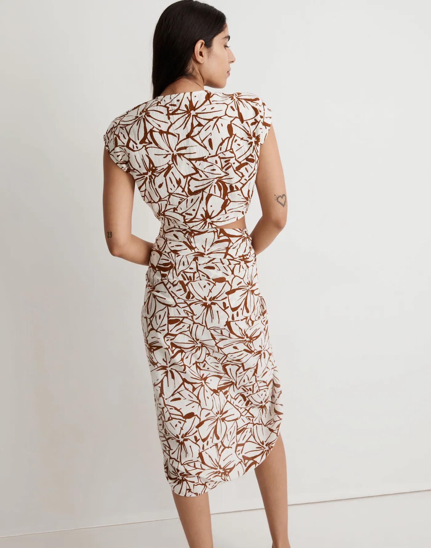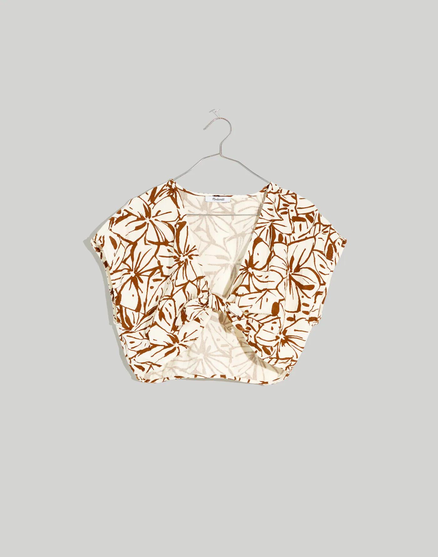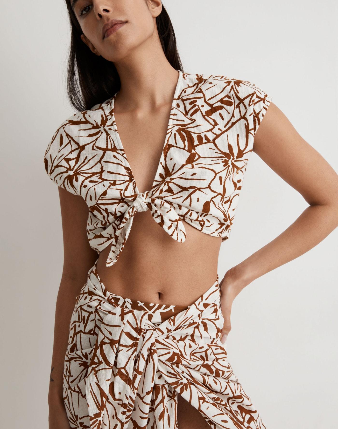 Double-Gauze Tie-Front Cropped Top in Abstract Flora