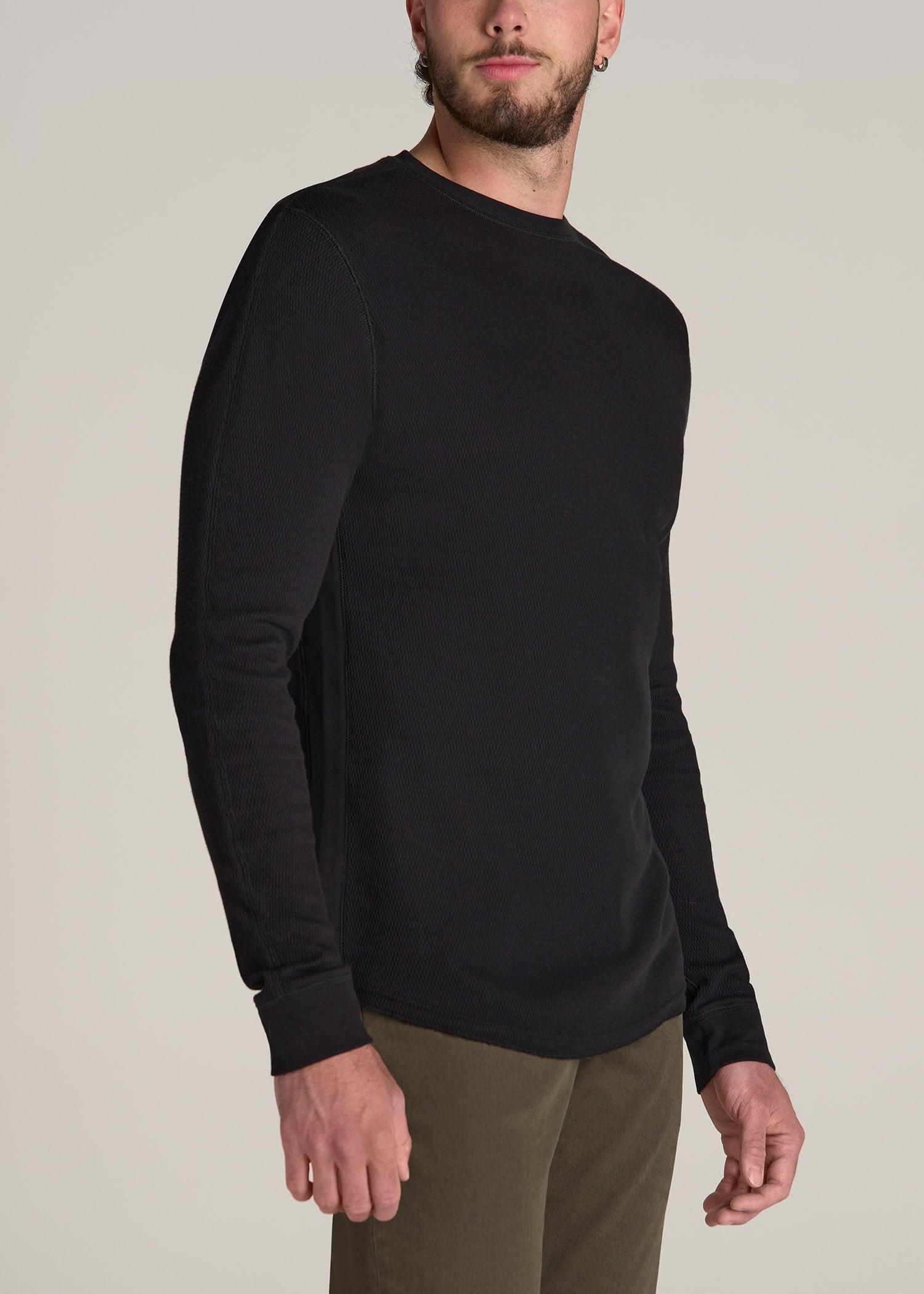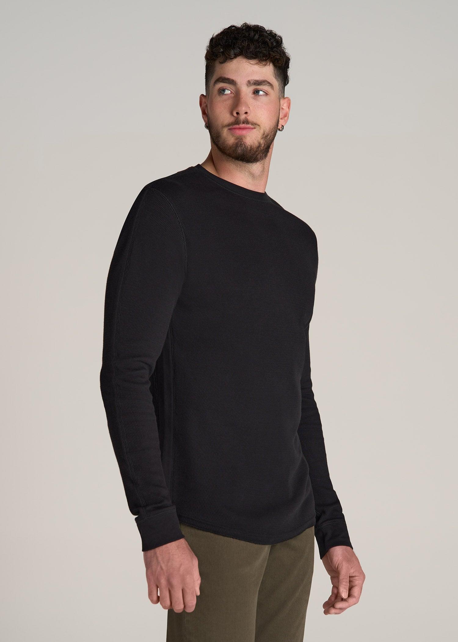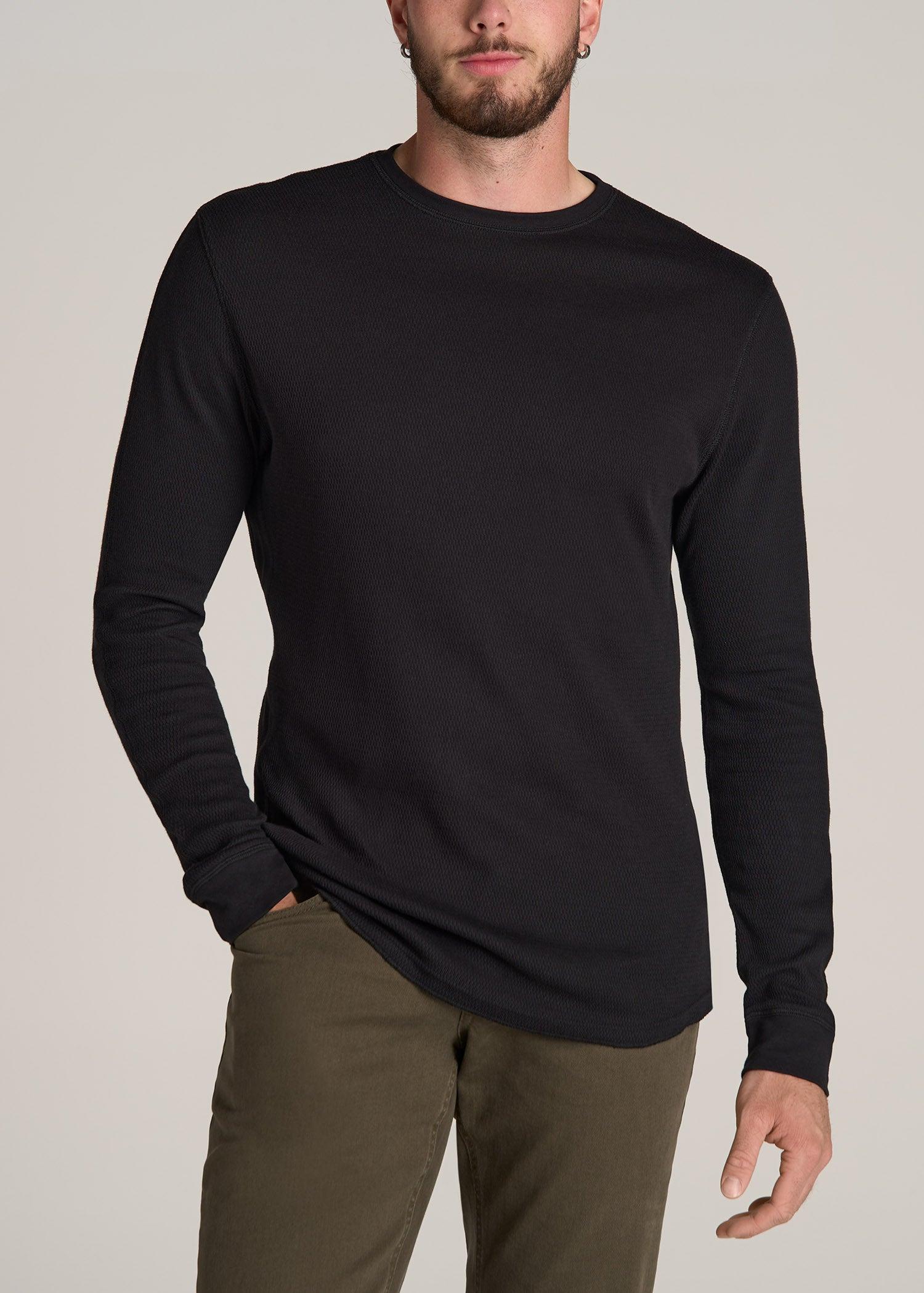 About Our Double Honeycomb Thermal Crewneck Extra-Long Top Discover the art of elevated layering. From serving as a base for your winter adventures to acting as a staple piece for weekends at home, this tall long sleeve shirt is a wardrobe essential. It’s made with soft cotton in a double honeycomb knit that traps body heat. This extra-long top has a modern, flattering fit that layers easily under hoodies and sweaters. The self-fabric collar and set-in sleeves offer smooth comfort, while ribbing along the sides and cuffs adds structure and texture. We made this tall men’s tee specifically for guys from 6’ to 7’1. That means it has extra-long sleeves and is long enough for your torso without being baggy. We know you want your fit to stay perfect, that’s why this top has been pre-washed and shrinkage controlled, so it won’t be altered in the wash. SIZE & FIT: Modern fit Hip length Crew neck Ribbed sleeve cuff and side panel Self-fabric collar Model is 6'5", 215lbs wearing size L Tall Size L Tall: Body length: 31.5", Sleeve length: 38.5" FABRIC & CARE: 100% cotton Pre-washed and shrinkage controlled Machine wash cold with like colors Do not bleach Tumble dry low Cool iron if needed