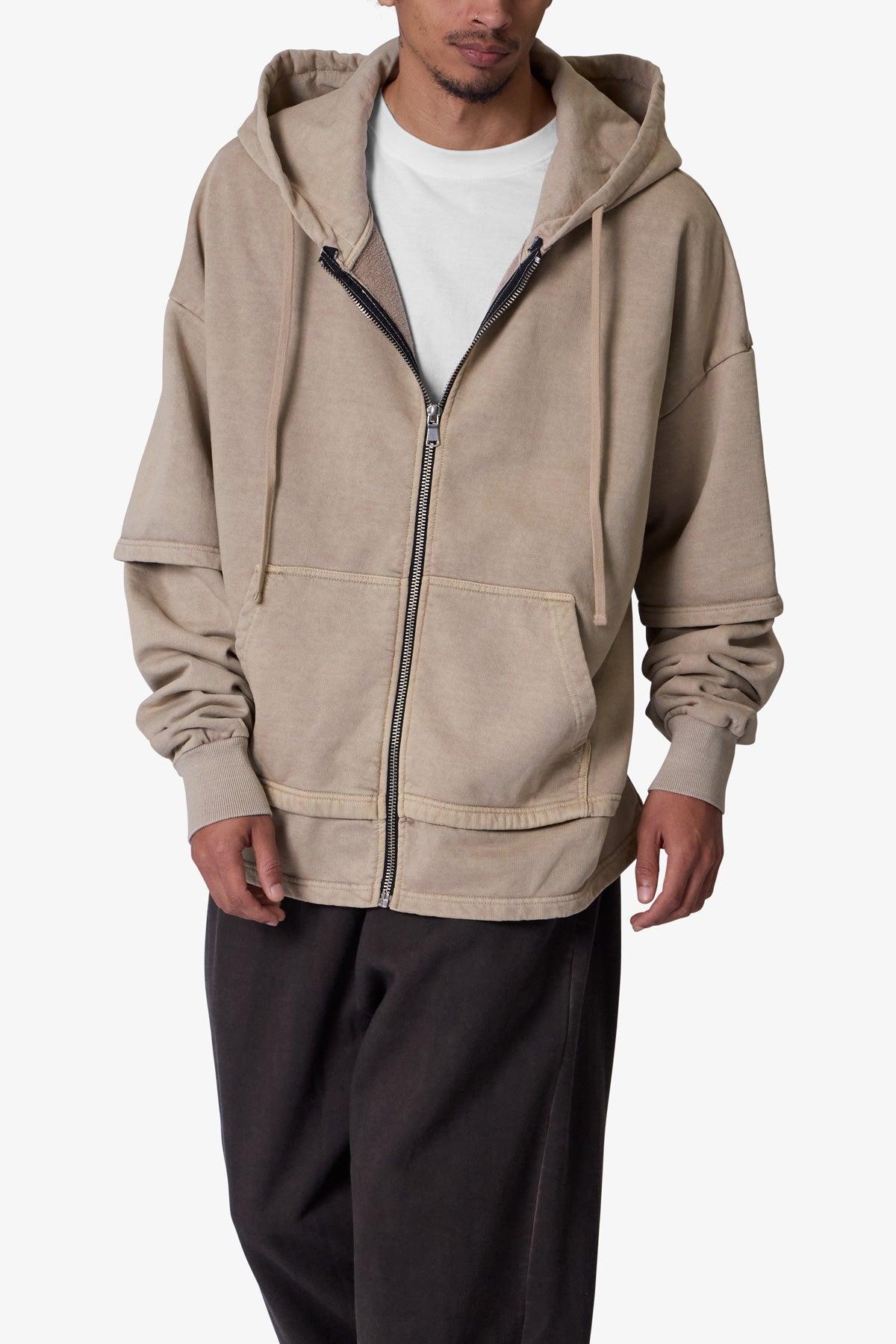 Double Layer Zipper Sweater - Washed Earth