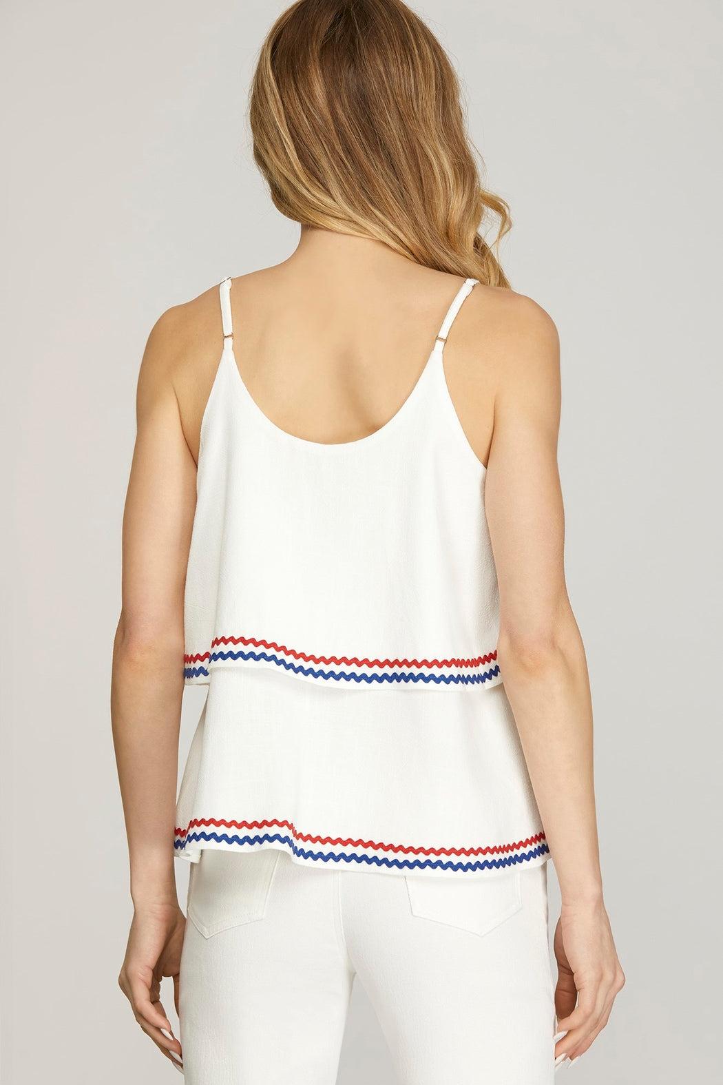 DOUBLE LAYERED WOVEN LINEN CAMI TOP WITH RIC RAC TRIM
