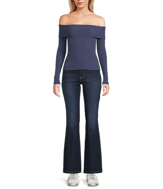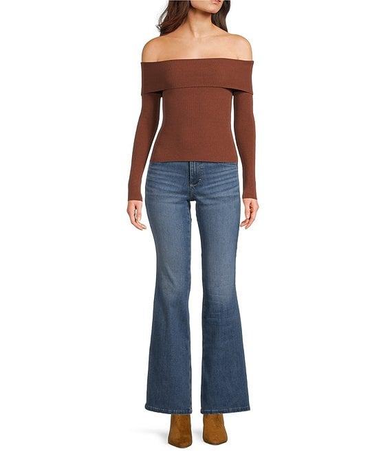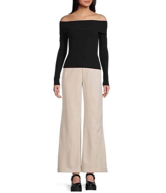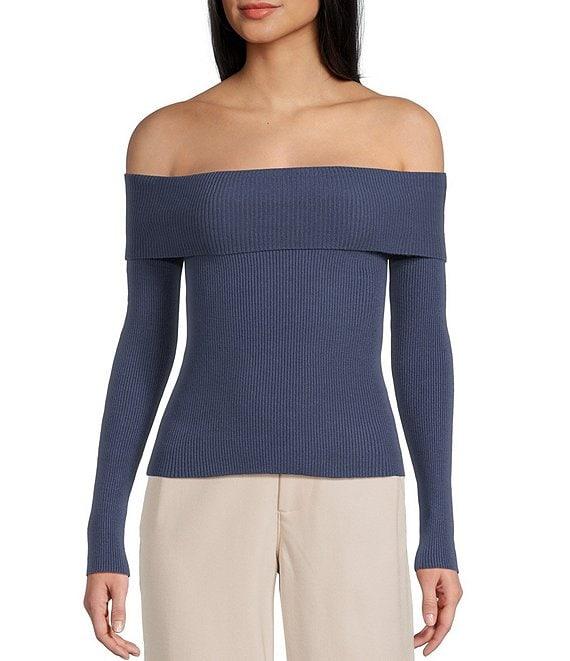 From Double Zero, this top features: Ribbed knit fabrication Off-the-shoulder neckline Long sleeves Pullover styling Rayon/polyester/nylon Hand wash cold/dry flat Imported.