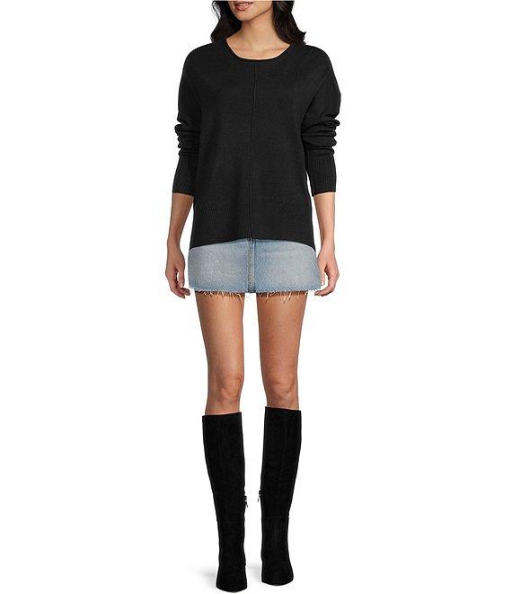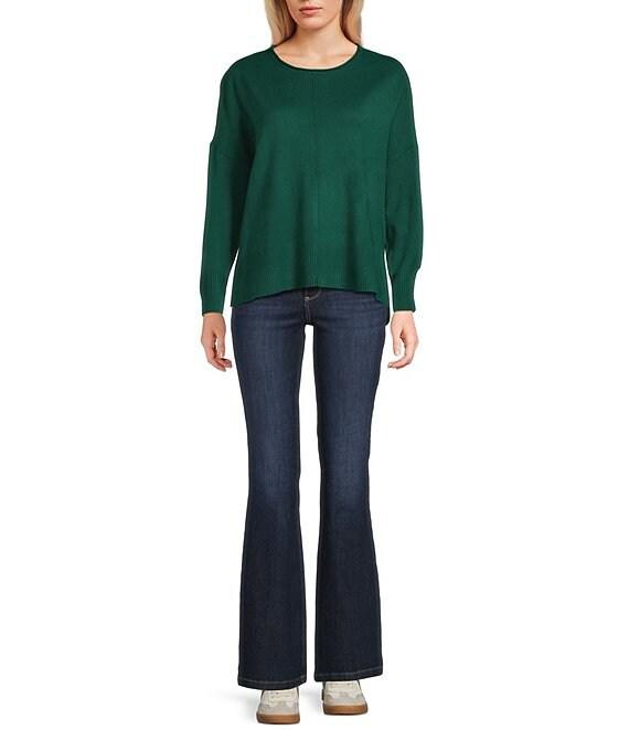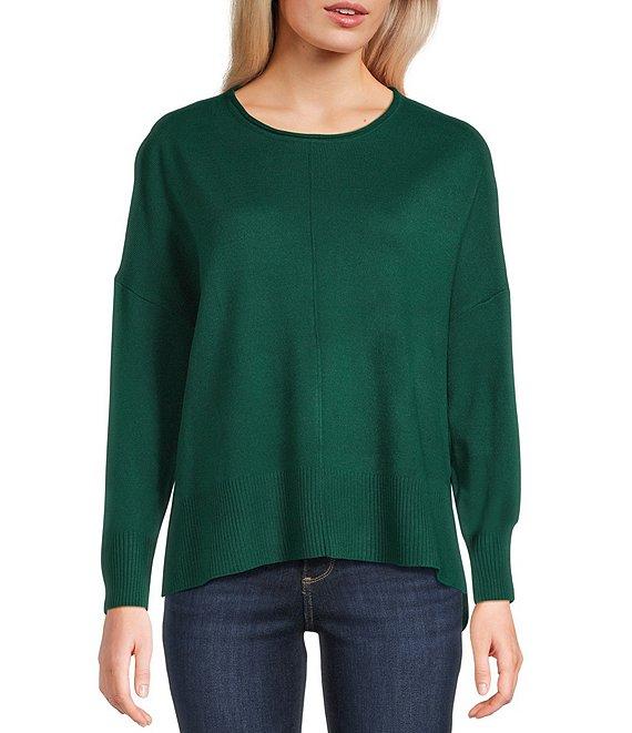 From Double Zero, this sweater features: Crew roll neckline Long sleeves Straight hem Seam detail on front Pullover styling Acrylic/nylon Hand wash/line dry Imported.