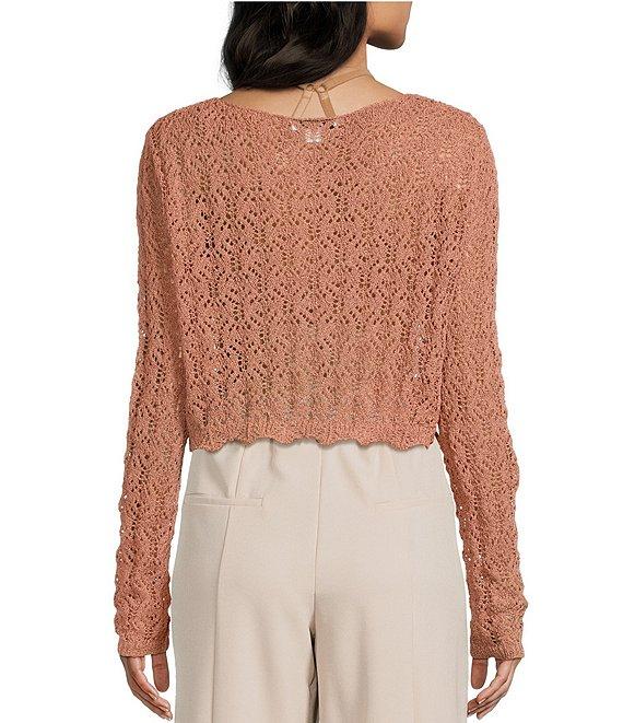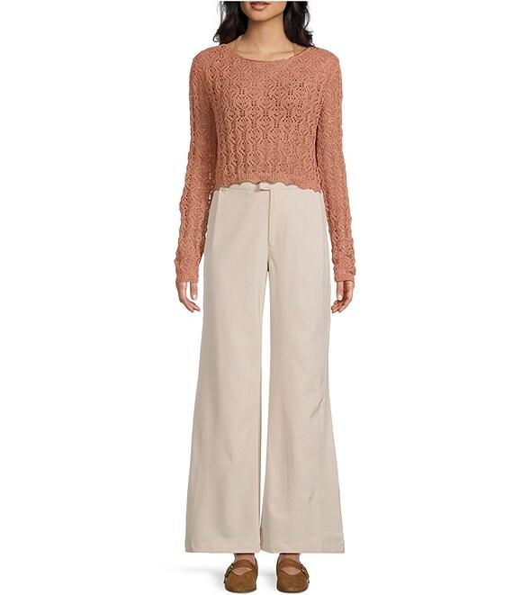 Double Zero Scoop Neck Long Sleeve Crochet Sweater Top