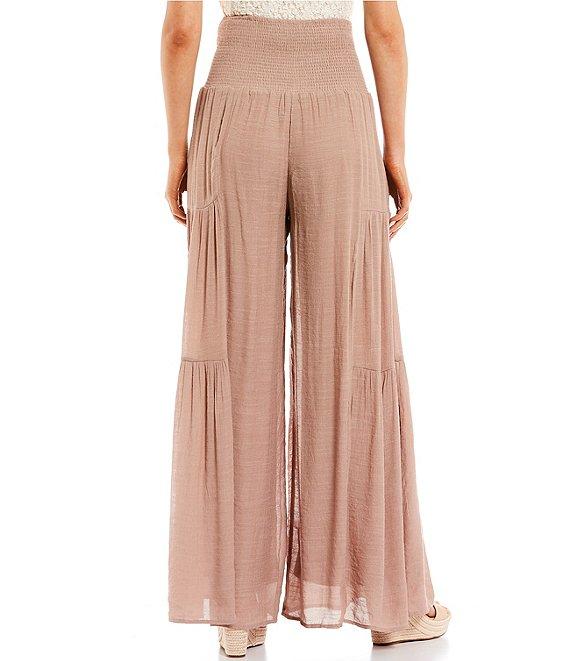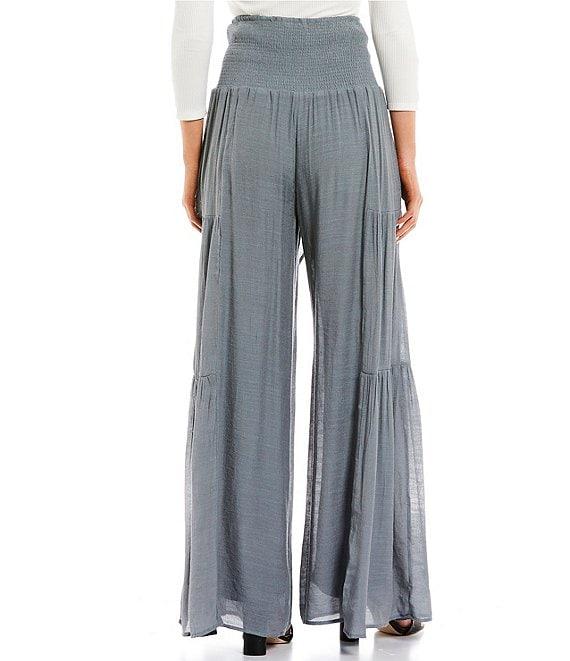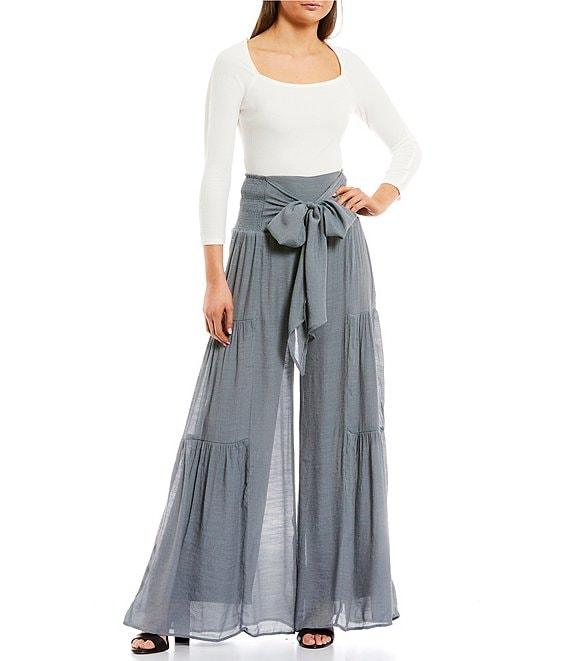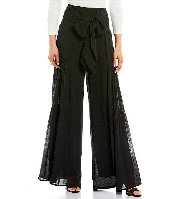 From Double Zero, these pants feature: High rise Pull-on styling Waist tie gaucho silhouette Wide legs Polyester Hand wash Imported.