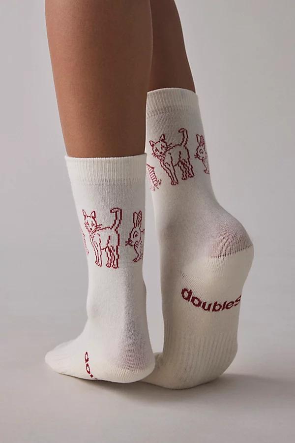 Elevated essential Doublesoul crew socks in a seriously soft knit complete with an ultra-cushioned sole. Topped with art from Bekah Martinez. Features Doublesoul Bekah high socks Buttery soft knit crew socks Made in collaboration with Bekah Martinez Soft knit of organic cotton, recycled nylon and eco dyes Breathable knit Non-slip ribbed cuff Ultra-cushioned Comfy seamless toe Mid-height calf length Content + Care 64% Organic cotton, 31% recycled polyester, 2% nylon, 3% spandex Machine wash Imported Size + Fit Crew sock length Fits womens US shoe size 6-10 Doublesoul Bekah High Sock in Butter, Womens at Urban Outfitters