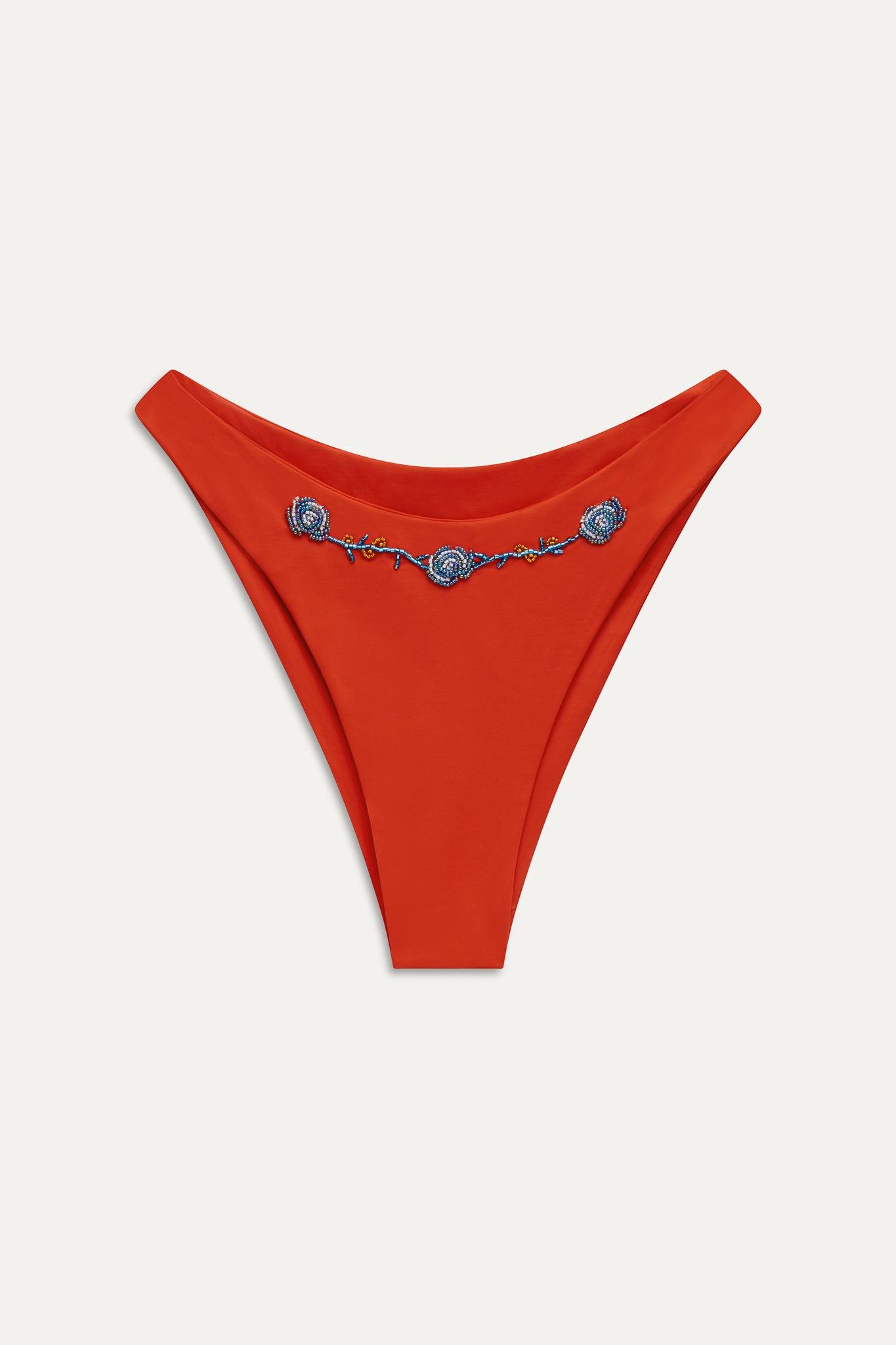 Every day feels like a getaway in the Dove bikini bottom. With its timeless design, flattering cut, and classic coverage, this bikini bottom is your go-to for effortless beach style. Details Figure enhancing high leg silhouette Special beaded floral details Fabric 80% Nylon + 20% Spandex Flat Swim Model Size & Fit This style runs true to size Angela is wearing a size Small Height 5' 11" (180cm) Bust 33" (84), Waist 22” (56.5cm), Hips 34” (86.5cm)