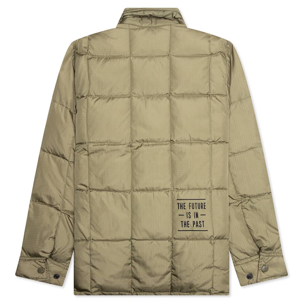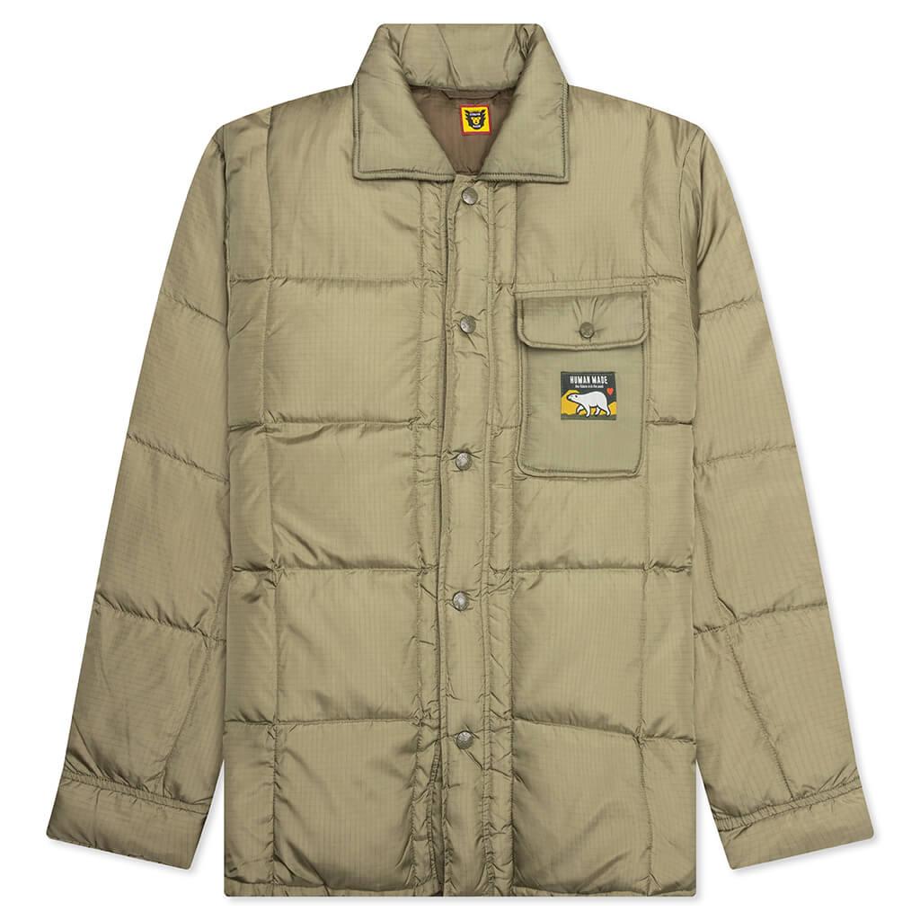 The Down Shirt Jacket in Olive Drab combines lightweight functionality with a contemporary silhouette. Crafted from nylon and filled with insulating down, it features a relaxed, boxy fit with square baffle construction for added warmth. A spread collar and snap fastening closure enhance its clean design, while a snap and flap patch chest pocket adds utility. Perfect for layering in cooler weather. 100% Nylon Down fill Relaxed, boxy silhouette Square baffle construction Spread collar Snap fastening closure Snap and flap patch chest pocket Style No: HM28JK035-OLD HM28JK035 OLIV