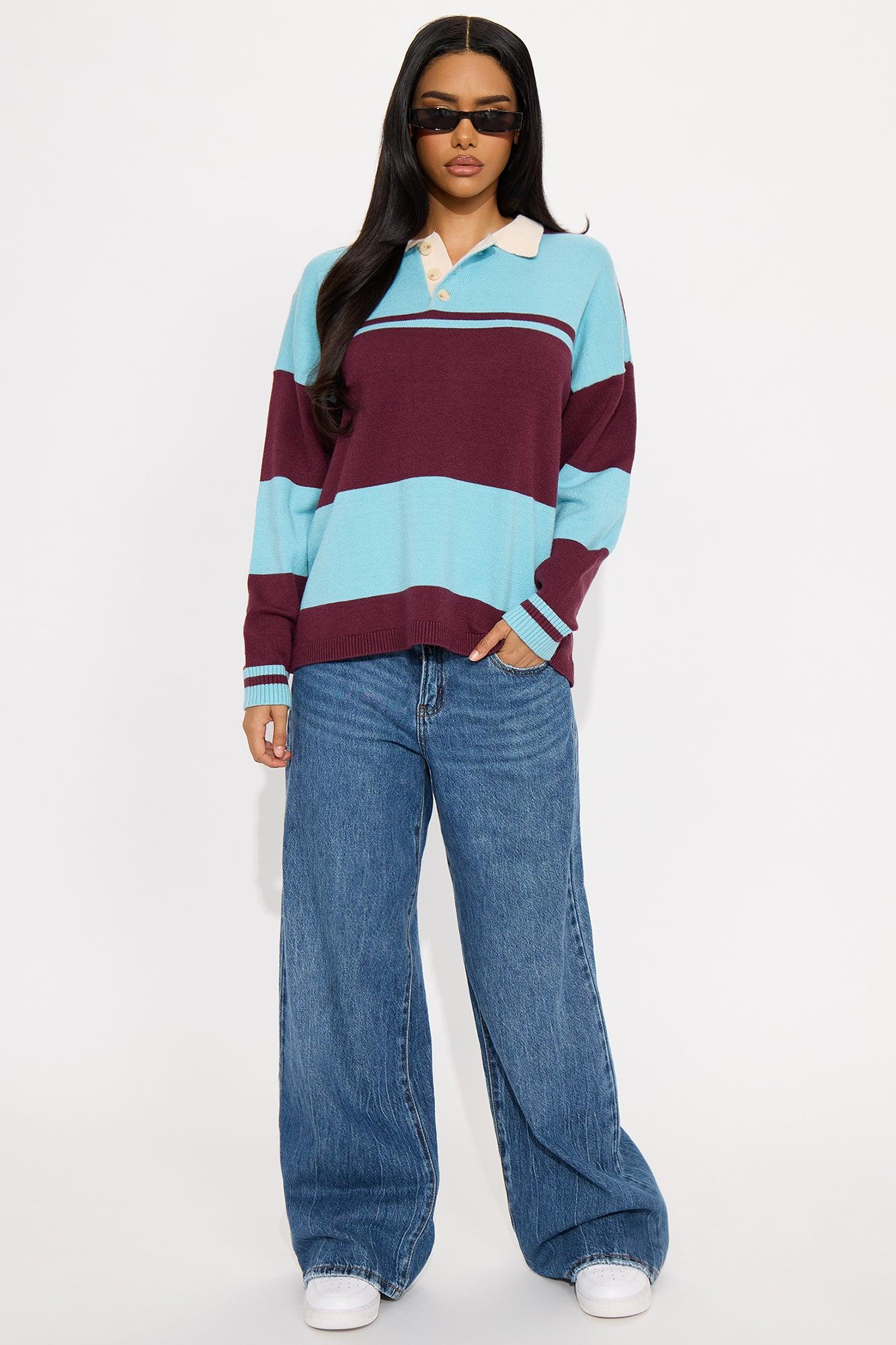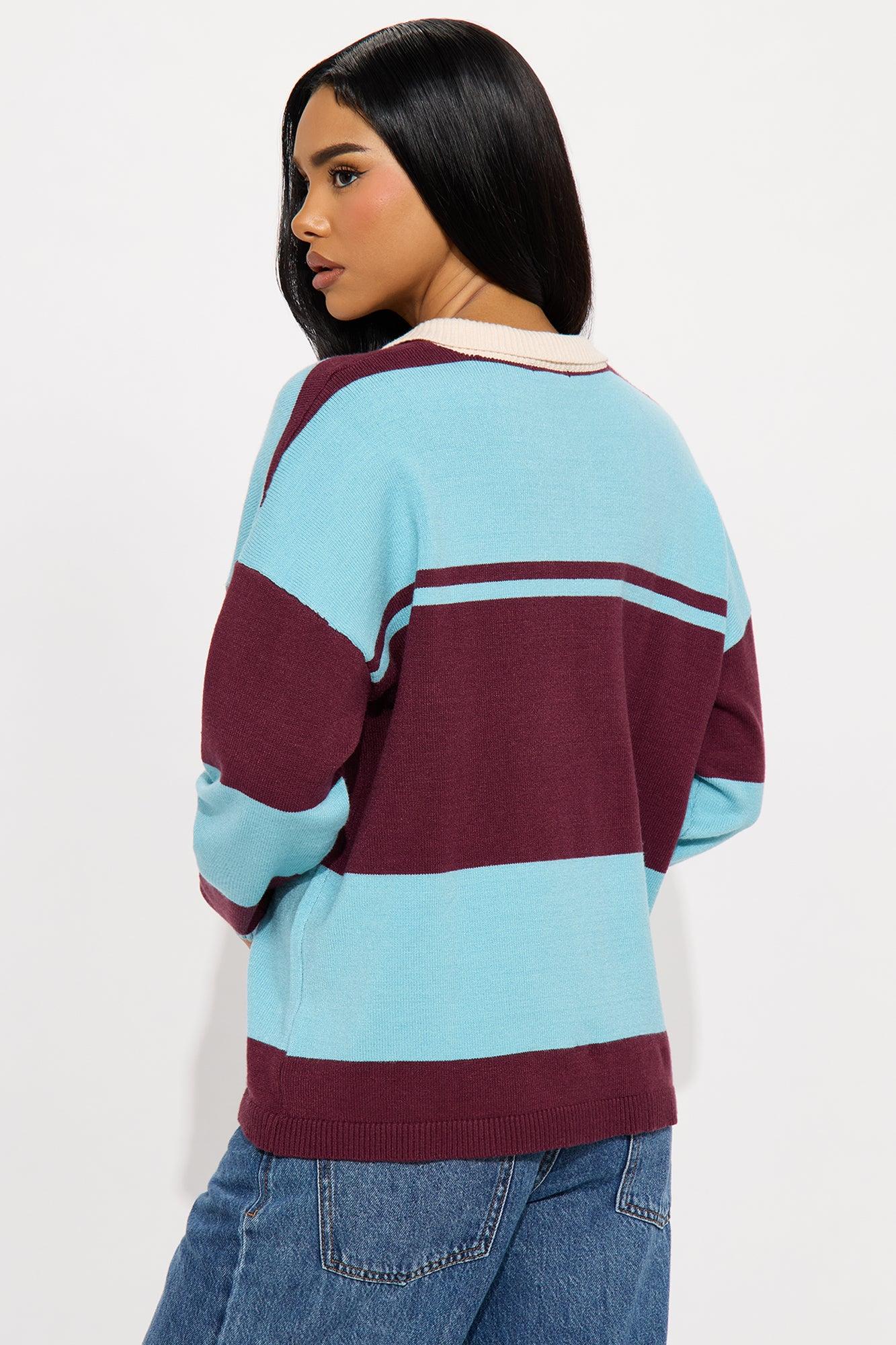 Down The Line Striped Polo Sweater - Blue/combo Female