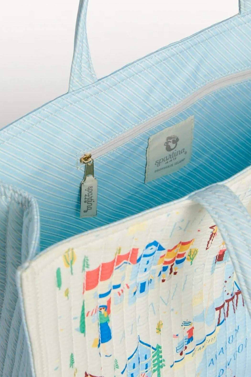 Zip and go with this lightweight and washable zip-top tote! Featuring padded shoulder straps, a magnetic back slip pocket, 2 inside slip pockets and 1 inside zipper pocket.