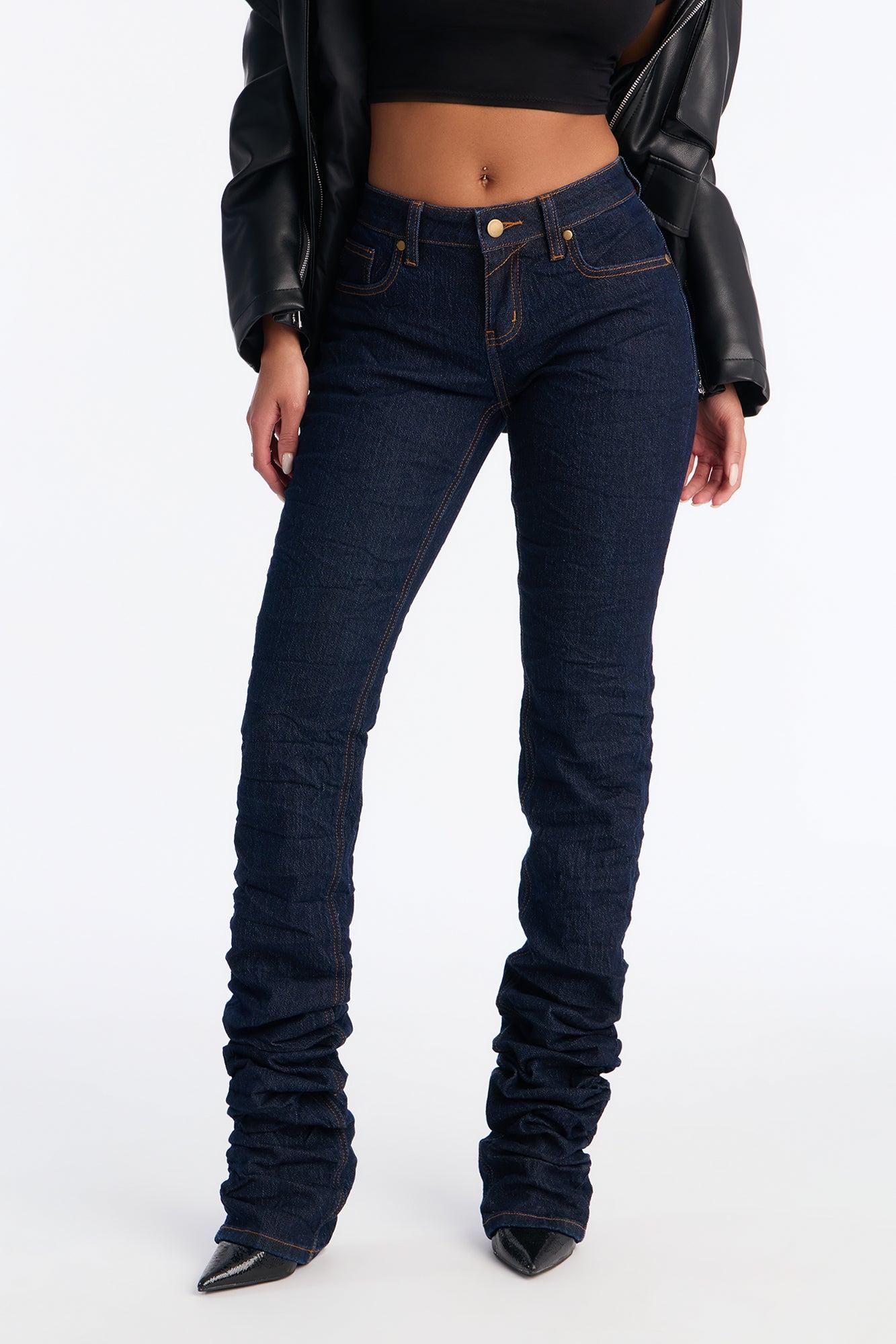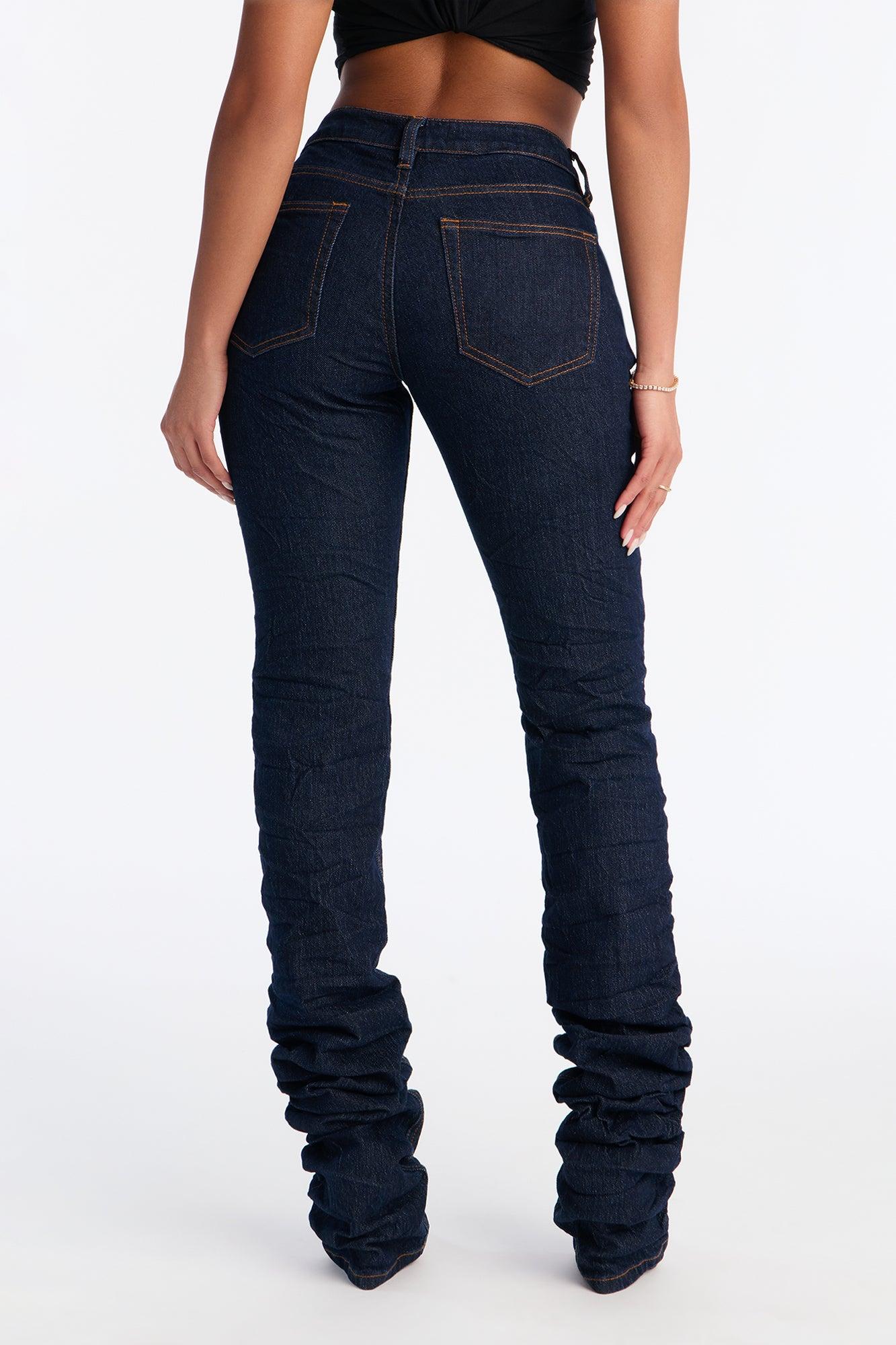 Downtown Crinkled 3D Stretch Stacked Skinny Jeans - Dark Denim Female