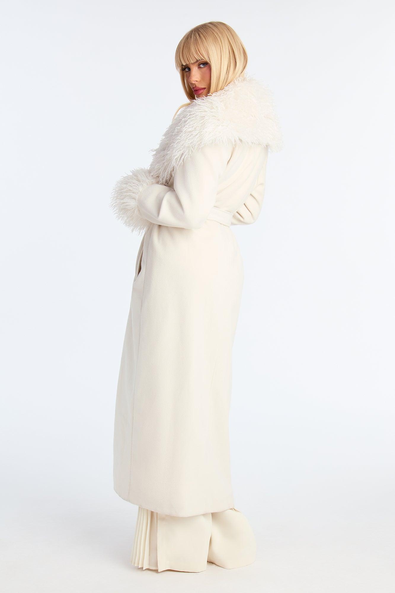 Available In Black And Ivory. Coat Collar Neckline Long Sleeves Fur Trim Tie Waist Pockets Fully Lined Self: 60% Polyester 20% Acrylic 20% Viscose Faux Fur: 100% Polyester Lining: 100% Polyester Imported California Proposition 65WARNING: Cancer and Reproductive Harm - www.P65Warnings.ca.gov.