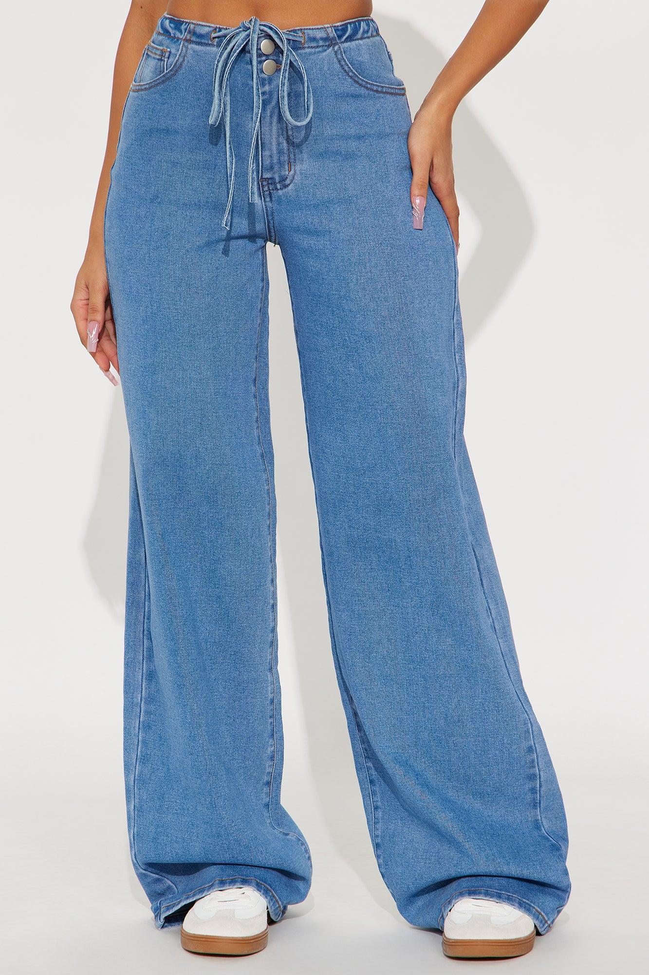 Available In Medium Blue Wash. Wide Leg Jean 5 Pocket Functional Drawcord 10" Rise 34" Inseam Medium Stretch Self: 53% Cotton 36% Polyester 10% Viscose 1% Spandex Imported California Proposition 65WARNING: Cancer and Reproductive Harm - www.P65Warnings.ca.gov.
