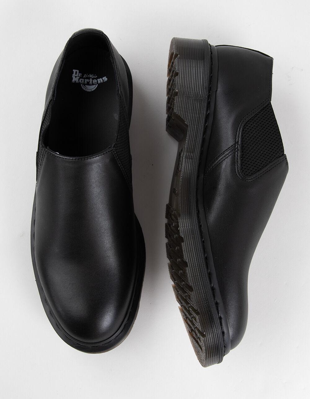 Dr. Martens Louis Leather Shoes. Keeping a low profile. The Louis shoe is a slimline silhouette built on a tapered last to create a sharper profile. Fitted with elasticated gussets to make slipping on and off simple. The black sole is marked with Dr. Martens' signature grooved edge and secured with black welt stitching. Goodyear Welted construction - the upper and sole are heat-sealed and sewn together, providing more comfort and durability for years to come. Heavy Smooth Aniline leather with strong wax coat and subtle pull up effect. Imported.