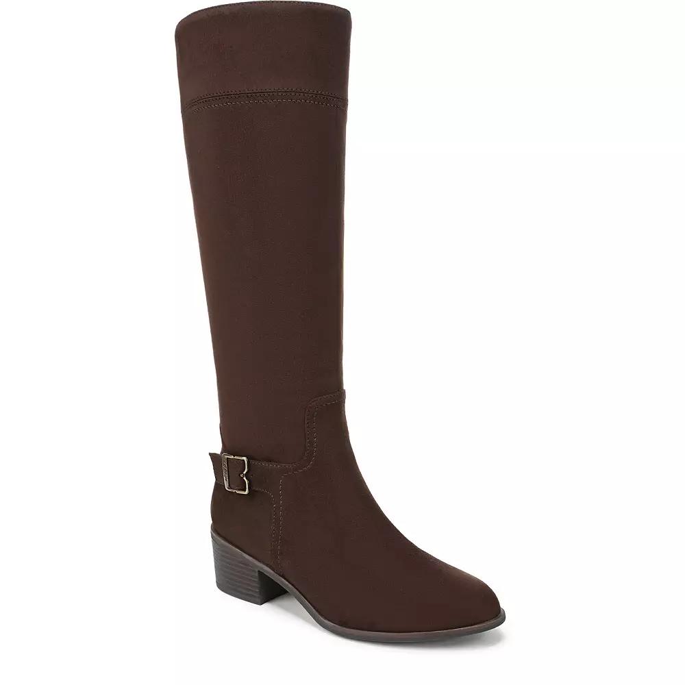 Classic yet contemporary, Dr. Scholl's tall boots are a must-have addition to your wardrobe. With their stylish buckle detailing and comfortable fit, these knee-high boots are perfect for effortlessly elevating your everyday outfits while providing the support you need all day long. Click this FOOTWEAR GUIDE to find the perfect fit and more! - https://www.kohls.com/feature/shoesizeguide.jsp. FEATURES: Riding boots designed with innovative comfort, SUSTAINABLY CRAFTED with recycled materials, Anti-microbial, anti-odor insole technology for cushioning and support, Knee high design with iconic buckle detailing and stitch accents. DETAILS: Imported, Round toe, Zipper closure, Heel height: 2 inches, Platform height: 0.25 inches, Multi-directional outsole. FIT & SIZE: Tall boot shaft, Shaft circumference: 15 inches, Shaft height: 14.764 inches. MATERIAL & CARE: Synthetic microsuede or faux leather upper, Polyurethane footbed, Fabric lining, Manmade (PU) outsole, Spot clean, Made in China. The antimicrobial properties do not protect users or others against bacteria, viruses, germs, or other disease organisms. Size: 6.5. Color: Dark Umber. Gender: female. Age Group: adult. Material: OTHER MATERIAL.