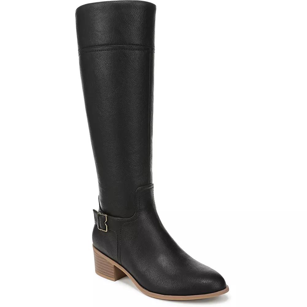 Classic yet contemporary, Dr. Scholl's tall boots are a must-have addition to your wardrobe. With their stylish buckle detailing and comfortable fit, these knee-high boots are perfect for effortlessly elevating your everyday outfits while providing the support you need all day long. Click this FOOTWEAR GUIDE to find the perfect fit and more! - https://www.kohls.com/feature/shoesizeguide.jsp. FEATURES: Riding boots designed with innovative comfort, SUSTAINABLY CRAFTED with recycled materials, Anti-microbial, anti-odor insole technology for cushioning and support, Knee high design with iconic buckle detailing and stitch accents. DETAILS: Imported, Round toe, Zipper closure, Heel height: 2 inches, Platform height: 0.25 inches, Multi-directional outsole. FIT & SIZE: Tall boot shaft, Shaft circumference: 15 inches, Shaft height: 14.764 inches. MATERIAL & CARE: Synthetic microsuede or faux leather upper, Polyurethane footbed, Fabric lining, Manmade (PU) outsole, Spot clean, Made in China. The antimicrobial properties do not protect users or others against bacteria, viruses, germs, or other disease organisms. Size: 7.5. Color: Black. Gender: female. Age Group: adult.