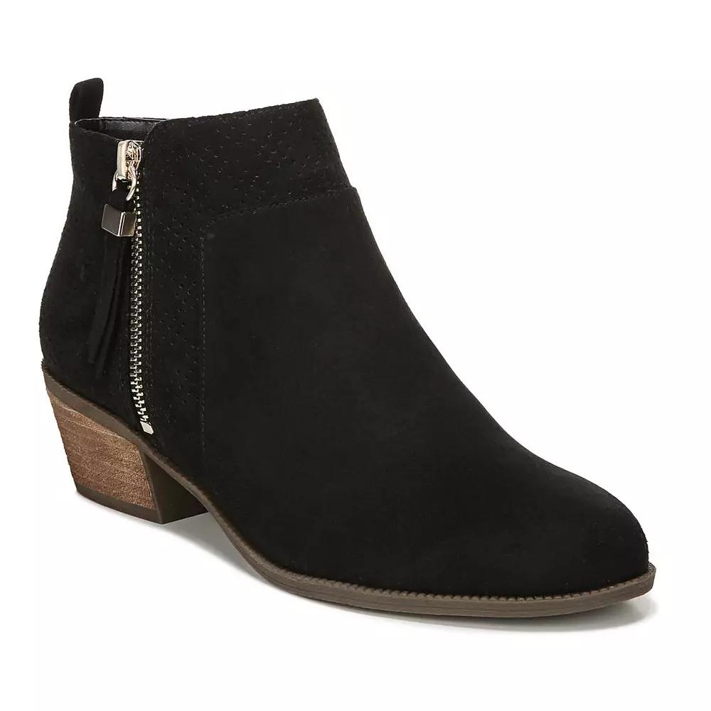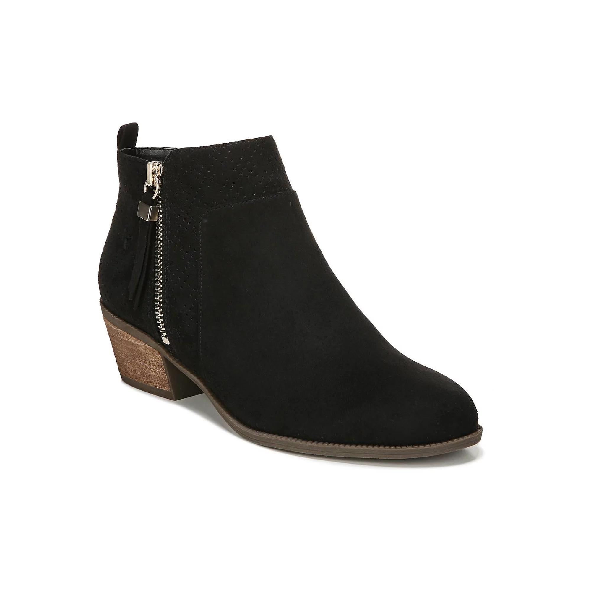 Western-inspired with modern flair. This comfortable bootie is full of style and personality. Microsuede upper. Almond toe. Outside zip closure with back pull tab. Perforated accents. Be Energized insole with all-day comfort cushioning and shock absorption designed to reduce foot pressure & fatigue. Flexible durable sole. 1 and 3/4 inch cru stack heel. Dr. Scholls Womens Brianna Bootie Boots (Dark Shadow Grey Microfiber)