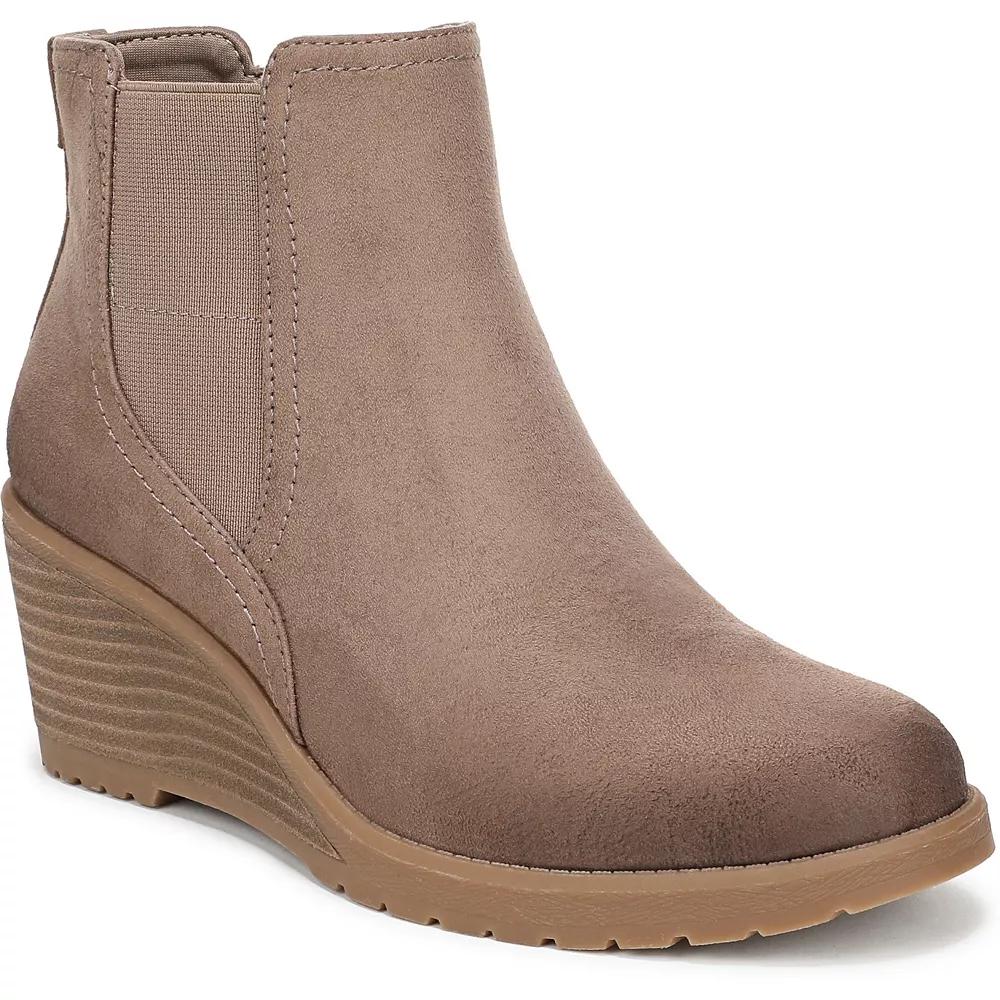 Discover the perfect blend of style and comfort with Dr. Scholl's chic Chelsea boots. Designed for all-day wear, these slip-ons feature a trendy wedge heel and innovative cushioning that keeps your feet feeling great, whether you're out on the town or running errands. Click this FOOTWEAR GUIDE to find the perfect fit and more! - https://www.kohls.com/feature/shoesizeguide.jsp. FEATURES: Comfortable Chelsea boots with a cool wedge heel, Sustainably crafted with recycled materials including plastic bottles, Anti-microbial, anti-odor insole technology with 15% plant-based BLOOM® foam, Easy on/off design with outside stretch gore and inside zipper, Stylish 2 1/2 inch faux cru stacked wedge heel with TPR outsole, Consciously packaged in an environmentally preferred box made from recycled materials. DETAILS: Imported, Round toe, Zipper closure, Heel height: 2.625 inches, Multi-directional outsole, Removable insole, Platform height: 0.38 inches. FIT & SIZE: Ankle boot shaft, Shaft circumference: 11.02 inches, Shaft height: 4.13 inches. MATERIAL & CARE: Fabric upper, Foam footbed, Fabric lining, Manmade (PU) outsole, Spot clean. The antimicrobial properties do not protect users or others against bacteria, viruses, germs, or other disease organisms. Size: 8. Color: Taupe. Gender: female. Age Group: adult.