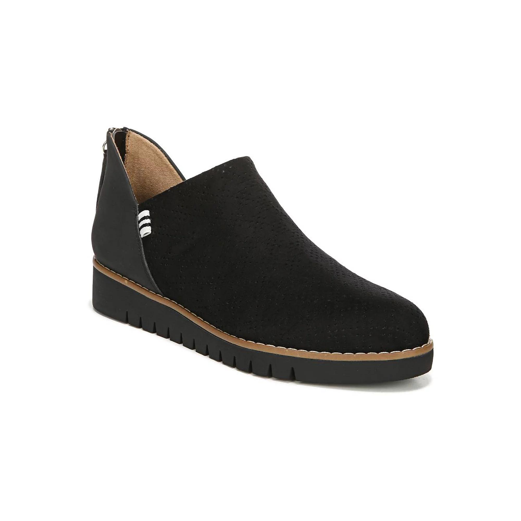 Unbelievably comfy, unbelievably stylish. You won't be able to get over these must-have Dr. Scholl's Insane flats! Click this FOOTWEAR GUIDE to find the perfect fit and more! - https://www.kohls.com/feature/shoesizeguide.jsp. SHOE FEATURES: Perforated detailing, Soft & sustainable linings made 80% from recycled bottles, Hidden gore for extra flexibility, Stitched welt design, Antimicrobial BE FREE® Energy Technology insole with 3 distinct zones designed for maximum comfort, Flexible, durable rubber-blend lug sole. SHOE CONSTRUCTION: Fabric upper, Fabric lining, Manmade outsole. SHOE DETAILS: Round toe, Zipper closure, 1 1/2-in. heel. The antimicrobial properties do not protect users or others against bacteria, viruses, germs, or other disease organisms. Size: 10. Color: Black. Gender: female. Age Group: adult. Material: SYNTHETIC.