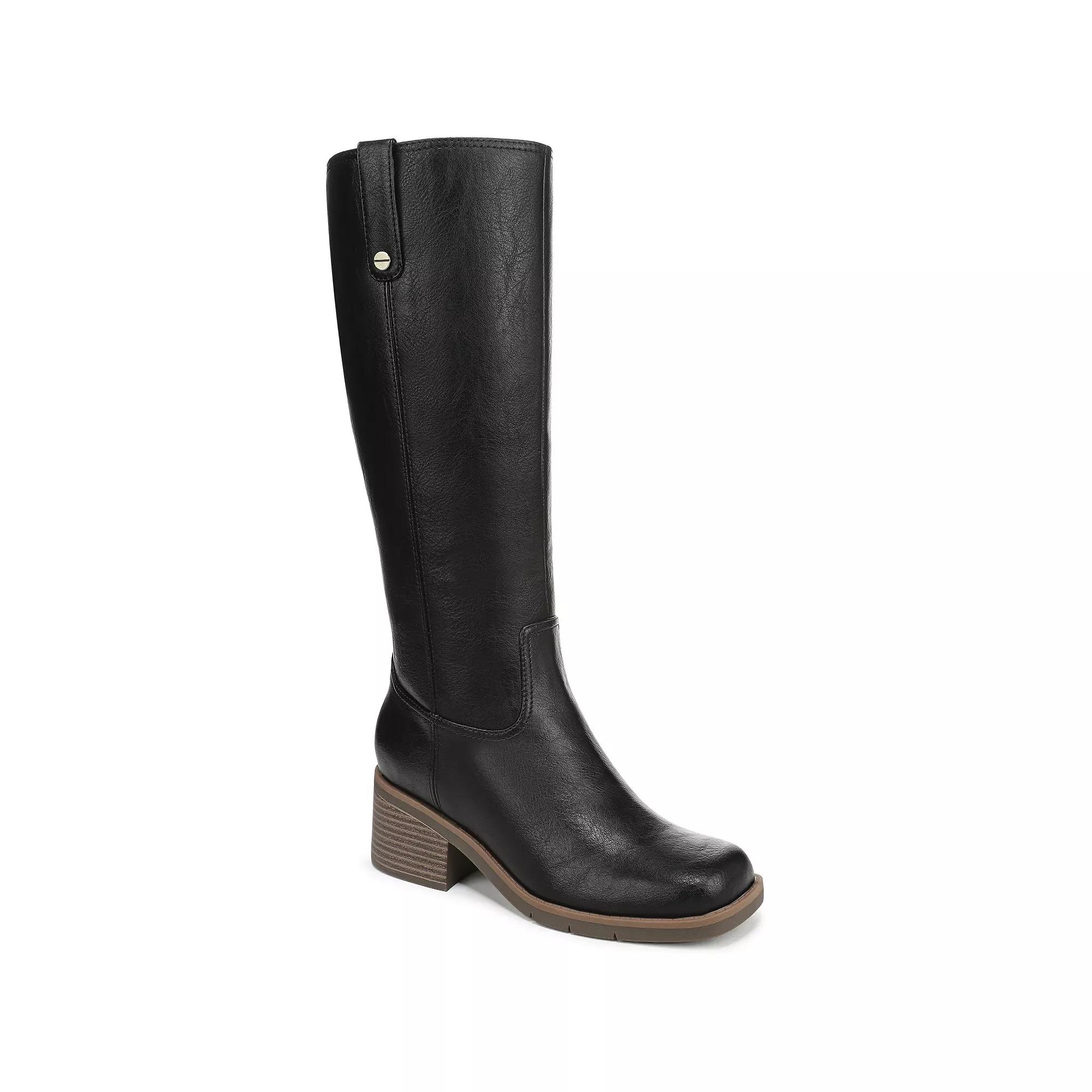 Discover the perfect blend of style and comfort with Dr. Scholl's stunning knee-high riding boots. With their chic western-inspired stitch details and cozy cushioning, these boots will effortlessly elevate your everyday look while providing all-day support you can count on. Click this FOOTWEAR GUIDE to find the perfect fit and more! - https://www.kohls.com/feature/shoesizeguide.jsp. FEATURES: SUSTAINABLE COMFORT: Anti-microbial, anti-odor Insole Technology with cushioning, comfort, & support that uses 15% cushy plant-based BLOOM® foam insole, SUSTAINABLY CRAFTED: Linings and topcloth partially made from recycled plastic bottles; partially recycled toe box and heel counter, MATERIALS: Low-chemical faux leather upper, FIT: Inside zipper for easy on/off, STYLE: Tall boots with western-inspired stitch details, rivet detail, square toe, and 2 1/4 inch stacked block heel with blow TPR outsole. DETAILS: Synthetic upper, Fabric lining, Manmade outsole, Square toe, Zipper closure, Foam footbed, Multi-directional outsole, 2.25-in. heel height, 0.50-in. platform height, 4.37-in. shaft height, 11.81-in. shaft circumference, Spot clean, Imported. The antimicrobial properties do not protect users or others against bacteria, viruses, germs, or other disease organisms. Size: 11 Wc. Color: Black. Gender: female. Age Group: adult.