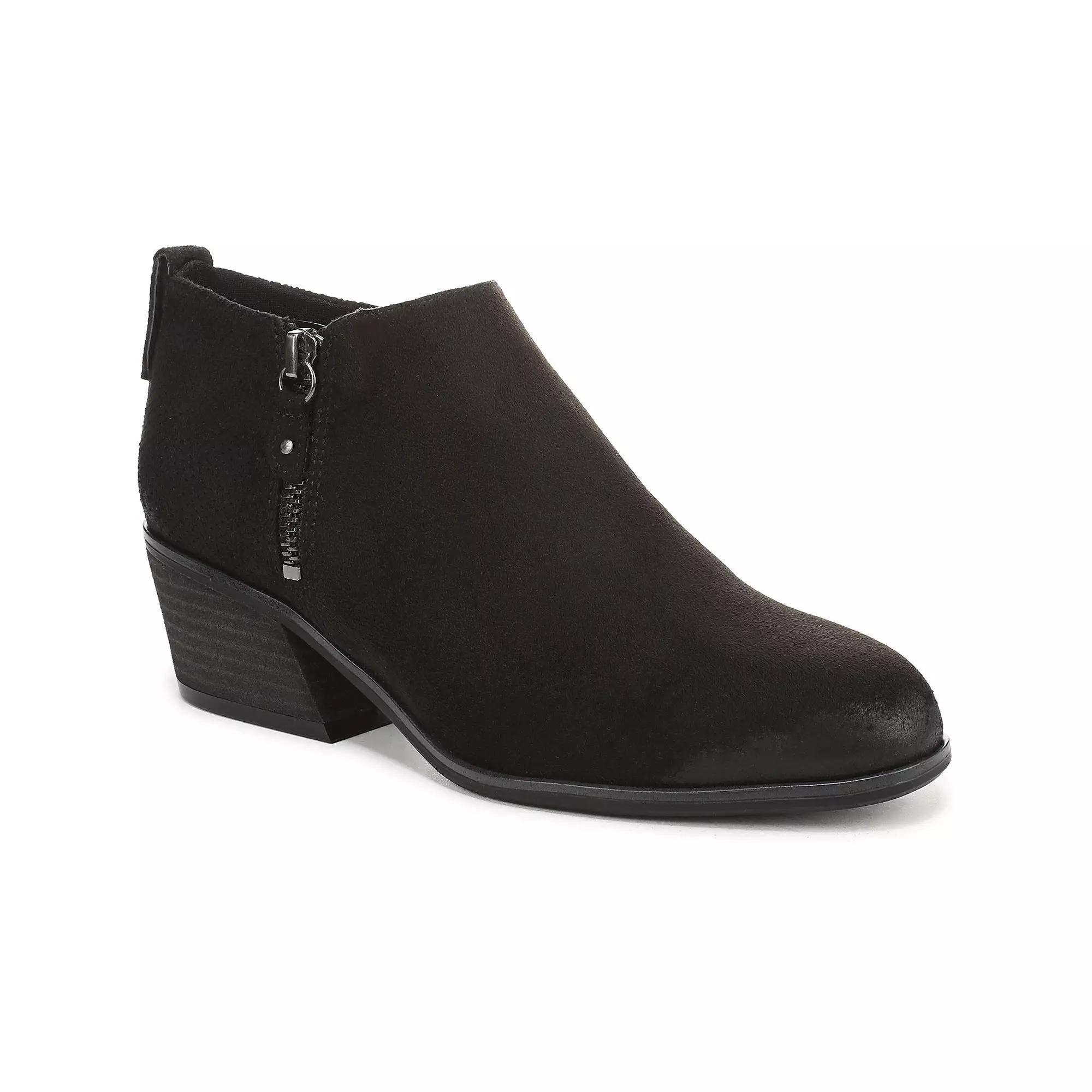 Timeless and chic, these stunning short boots from Dr. Scholl's merge western flair with modern comfort, making them the ideal choice for any outfit. With a sleek design, almond toe, and trendy block heel, you'll enjoy effortless style whether you're dressing up for a night out or keeping it casual for brunch. Click this FOOTWEAR GUIDE to find the perfect fit and more! - https://www.kohls.com/feature/shoesizeguide.jsp. FEATURES: SUSTAINABLE COMFORT: Anti-microbial, anti-odor Insole Technology with cushioning, comfort, & support that uses 15% cushy plant-based BLOOM® foam insole, SUSTAINABLY CRAFTED: Linings and topcloth partially made from recycled plastic bottles; partially recycled toe box and heel counter, MATERIALS: Oiled fabric upper or microfiber upper partially made from recycled plastic bottles, FIT: Outside zipper and inside stretch gore for easy on/off, STYLE: Short ankle boots for women with almond toe, back pull tab, and 2 inch with slanted faux cru stacked heel and TPR outsole. DETAILS: Fabric upper, Fabric lining, Manmade outsole, Almond toe, Zipper closure, Foam footbed, Multi-directional outsole, 2-in. heel height, 0.38-in. platform height, 4.13-in. shaft height, 11.42-in. shaft circumference, Spot clean, Imported. The antimicrobial properties do not protect users or others against bacteria, viruses, germs, or other disease organisms. Size: 7.5. Color: Black. Gender: female. Age Group: adult.
