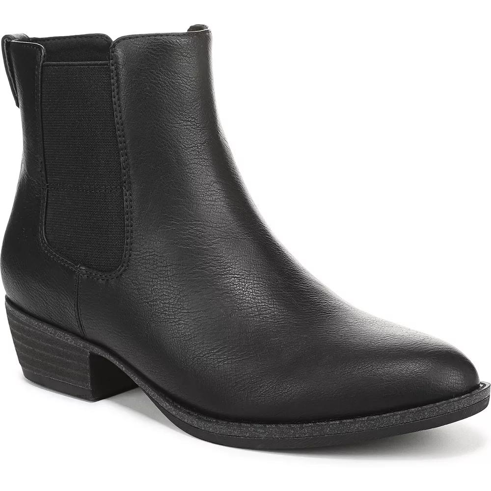Unleash your style with Dr. Scholl's versatile Chelsea boots, designed to fuse fashion with all-day comfort. These chic ankle boots feature a sleek almond toe and block heel, making them the perfect go-to for brunch with friends or a day at the office, while their easy slip-on design ensures you're ready in an instant. Click this FOOTWEAR GUIDE to find the perfect fit and more! - https://www.kohls.com/feature/shoesizeguide.jsp. FEATURES: Insoles partially crafted with 15% cushy, algae-infused BLOOM® foam, MATERIALS: Microfiber upper partially made from recycled plastic bottles, FIT: Zipper closure for secure fit, SUSTAINABLY CRAFTED: Fabric lining and topcloth partially made from recycled plastic bottles; partially recycled toe box and heel counter, SUSTAINABLE COMFORT: Anti-microbial, anti-odor Insole Technology with anatomical cushioning, comfort, & arch support, FEEL GOOD FLEX: Soft, lightweight outsole with built in flex grooves, MOVEMENT: Lightweight, flexible construction moves with you, STYLE: Women’s ankle boots with almond toe, side stretch gore, back pull tab, and 1 1/3 inch stacked block heel. DETAILS: Synthetic/Fabric upper, Fabric lining, Manmade outsole, Almond toe, Zipper closure, Foam footbed, Multi-directional outsole, 1.375-in. heel height, 0.38-in. platform height, 4.37-in. shaft height, 11.22-in. shaft circumference, Spot clean. The antimicrobial properties do not protect users or others against bacteria, viruses, germs, or other disease organisms. Color: Black. Gender: female. Age Group: adult.