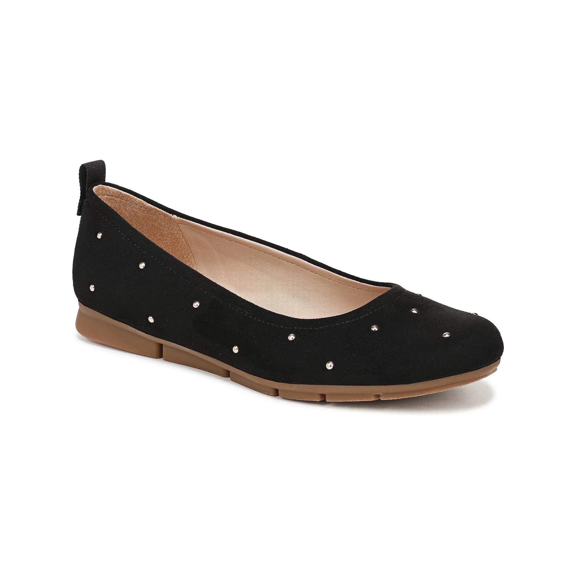 Step into effortless elegance with Dr. Scholl's Timeless Women's Ballerina Shoes, designed with a sleek silhouette and cushioned footbed for all-day comfort. Perfect for pairing with any outfit, these versatile flats blend style and functionality seamlessly. Click this FOOTWEAR GUIDE to find the perfect fit and more! - https://www.kohls.com/feature/shoesizeguide.jsp. FEATURES: SUSTAINABLY CRAFTED: Fabric lining partially made from recycled plastic bottles; partially recycled fabric topcloth, partially recycled toe box and heel counter, MATERIALS: Soft knit fabric, faux leather, or microfiber upper partially made from recycled plastic bottles, FEELS: Anti-microbial, anti-odor Insole Technology with molded faux leather foam, cushioning, comfort, & support, FEEL GOOD FLEX: Soft, lightweight outsole with built in flex grooves, MOVEMENT: Lightweight, flexible construction moves with you. DETAILS: Fabric upper & lining, Manmade outsole, Round toe, Pull-on, Foam footbed, Multi-directional outsole, 0.50-in. heel height, Spot clean, Imported. Size: 11. Color: Black Polka Dot. Gender: female. Age Group: adult.