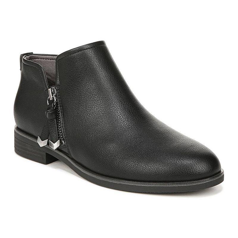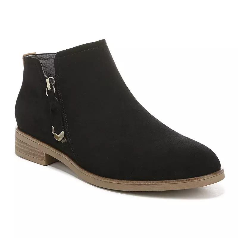 The primary materials that compose this product contain a minimum of 20 percent recycled content. Create a stylish statement wearing the chic and classy Dr. Scholl's Astir Boots. Faux suede upper. Fabric lining partially made from recycled bottles. Cushioned foam footbed. Global recycle standard sustainability. Almond toe. Outside zipper closure for easy on/off. Slight block heel. Synthetic outsole. Imported. Measurements: Heel Height: 1 1 8 in Product measurements were taken using size 6, width M. Please note that measurements may vary by size.